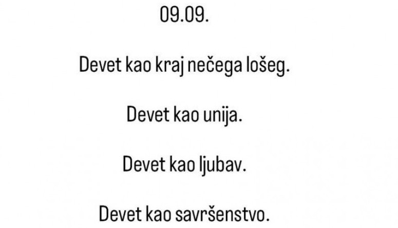 Govoreći o brojevima, današnji datum 09.09. donosi brojne promene. Prema tumačenjima numerologa, on donosi duboke istine i spoznaje o sebi i drugima. Broj 9 označava kraj nečega lošeg, devet kao ljubav devet kao savršenstvo. Dakle, danas su emocije izraženije nego svih ostalih dana. Potrudite da kontrolišete prevelike izlive emocija, budite hrabri u postupcima i koračajte ka novim ciljevma.