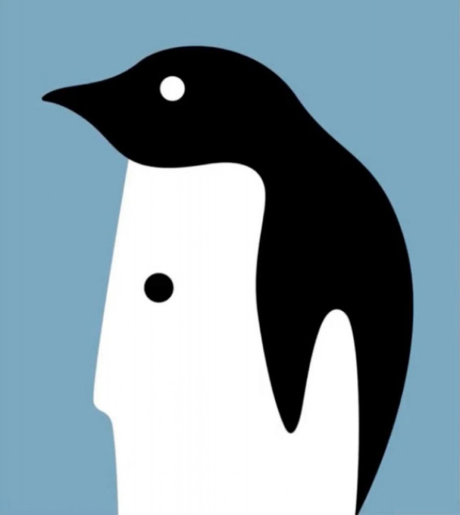Kad se dovoljno dugo posmatra, fotografija prikazuje i lice belog čoveka s crnom zalizanom kosom i crno-belog pingvina s plavom pozadinom. Zavisno o tome kako osoba tumači sliku, može videti čoveka ili pingvina. Jilin tvrdi da ono što osoba prvo vidi – čoveka ili pingvina – otkriva snažne crte njenog karaktera.