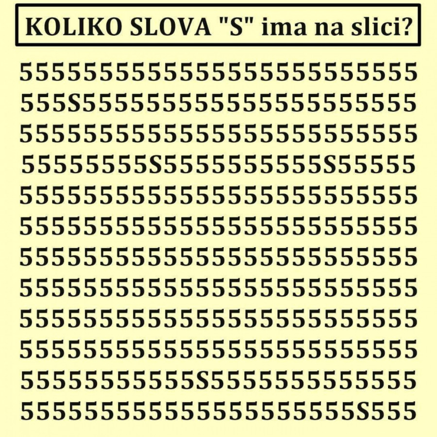 Ovoga puta, zadatak je naizgled lak. U moru brojeva 5 treba da pronađete sva slova "S".