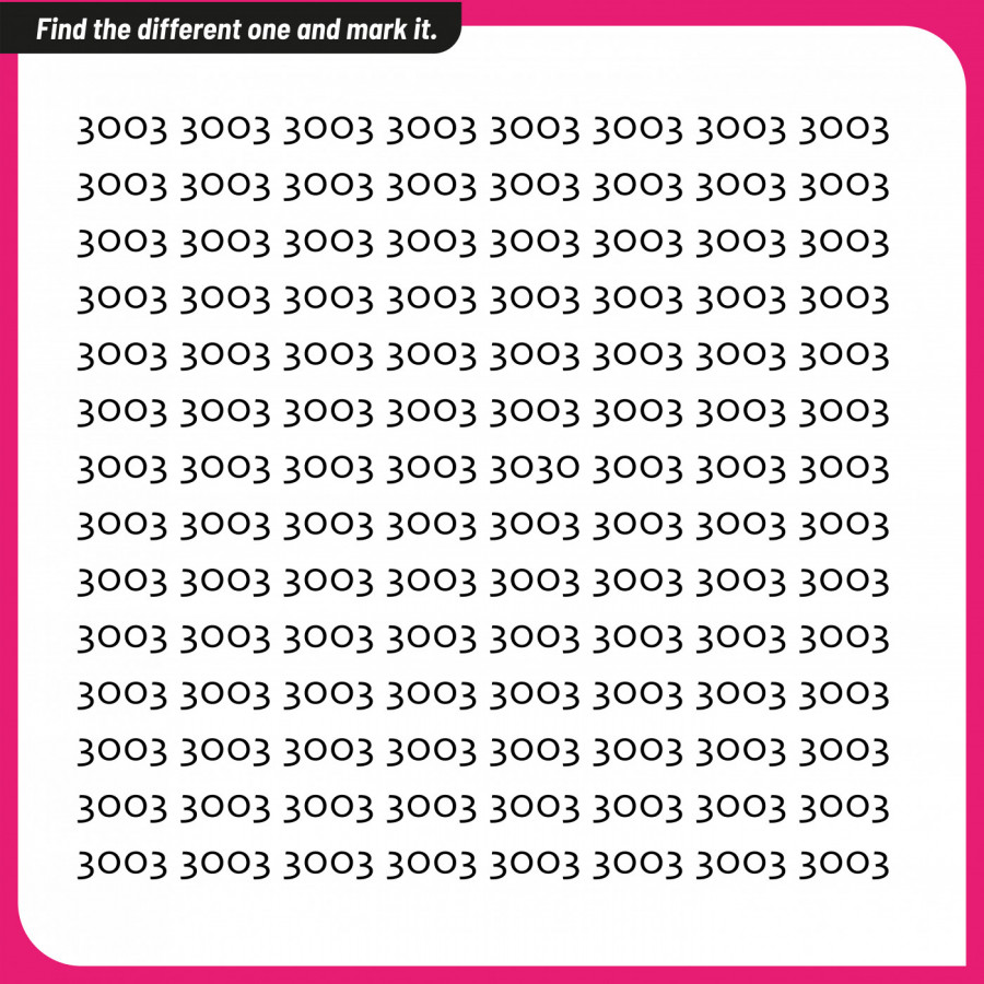 Ovoga puta zadatak je naizgled lak. U trojki i nula treba da pronađete jedini broj 3030.