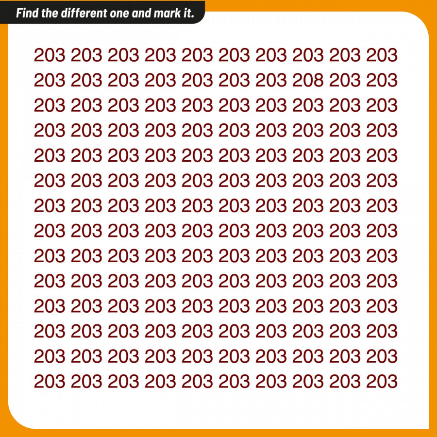 Kako vreme leti, vi sve brže pregledate redove, i brojevi počinju da se mešaju i zbog toga je veoma teško zadržati fokus i pronaći jedini broj 208.