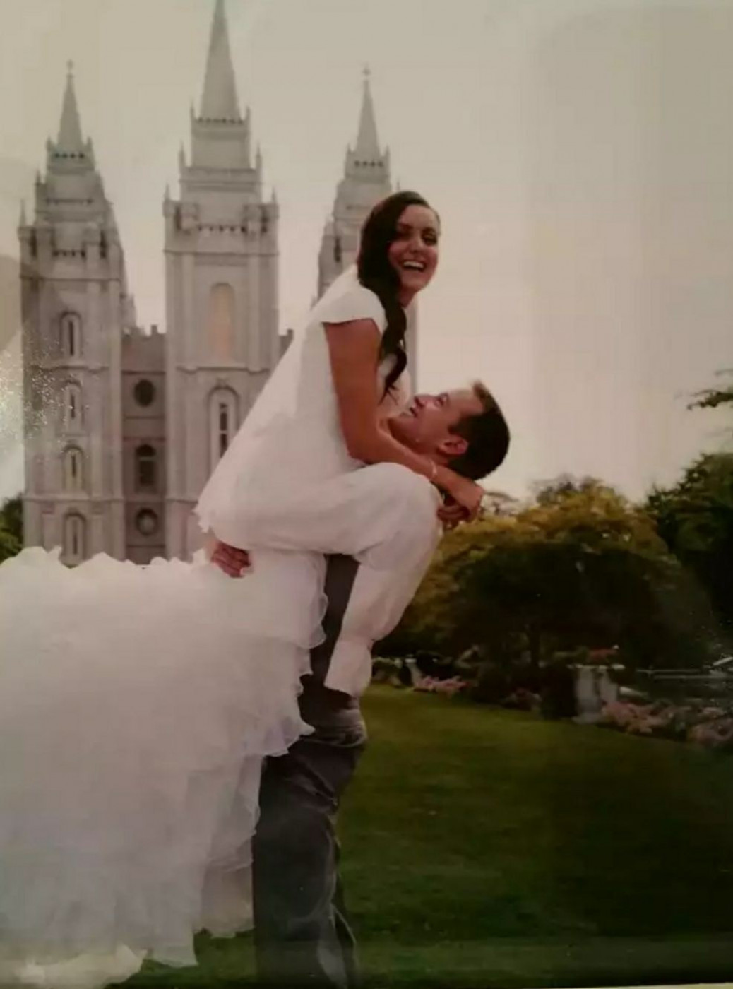 Oduševljeni mladoženja je podigao nasmejanu mladu uvis i time stvorio optičku varku gde se njene noge nalaze. Mnogi su pomislili da su prebačene preko mladoženjenih ramena, što su mnogi opisali kao veoma neumesno i neromantično.