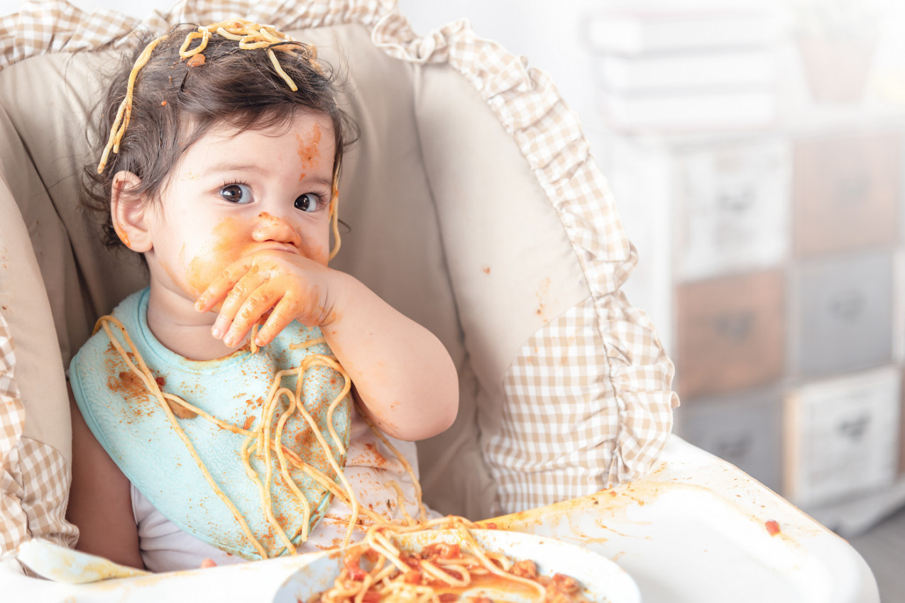 Kada beba počinje sa čvrstom hranom sigurno je da će okolo biti nereda, prljavog stolnjaka ili tepiha ispod stola. Ali to je sasvim u redu. Bebama treba dozvoliti da se upoznaju sa novom hranom i to kroz druga čula poput dodira i mirisa što će im pomoći da upoznaju teksturu i ukus hrane. Ukoliko tokom jela stalno brišete bebu i sklanjate hranu to će je ometati da se uključi u hranu a svakako je i frustrirajuće ako joj dok jede dodirujete lice.