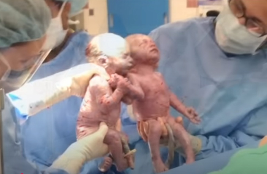 Porodilište se odjednom utišalo, a svi prisutni su ostali u šoku. Svi su bez daha gledali kada je lekar prilikom carskog reza podigao blizance istovremeno, a ne jednog za drugim. To je bilo zato što ih nije mogao razdvojiti. Umesto očekivanog plača, čuli su lekarev glasan uzdah koji je izazvao zabrinutost u celoj porođajnoj sali. Naime, umesto da budu odvojene, bliznakinje su bile spojene rukama. Tačnije, nije ih mogao razdvojiti pošto su se čvrsto držale za ruke, što je izazvalo nevericu među prisutnima.