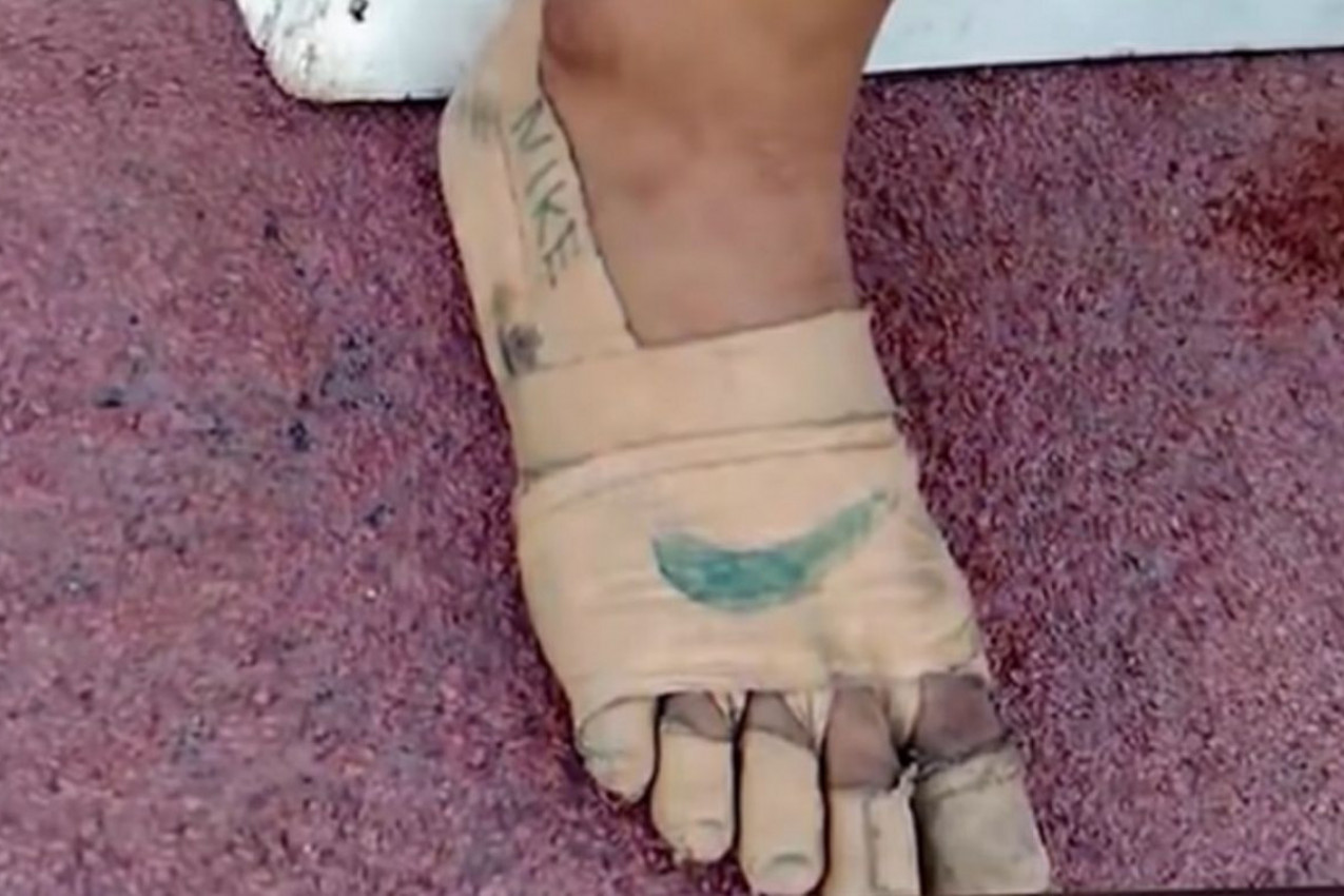 Pošto one klasične i atraktivne patike kakve su njeni vršnjaci mogli da priušte ona sebi nije mogla da priušti, odlučila je da reši taj problem. Zbog bosih nogu i eventualnog povređivanja prilikom trčanja, obmotala je stopala i prste lepljivom trakom i na njoj nacrtala znak brenda „Najk“.