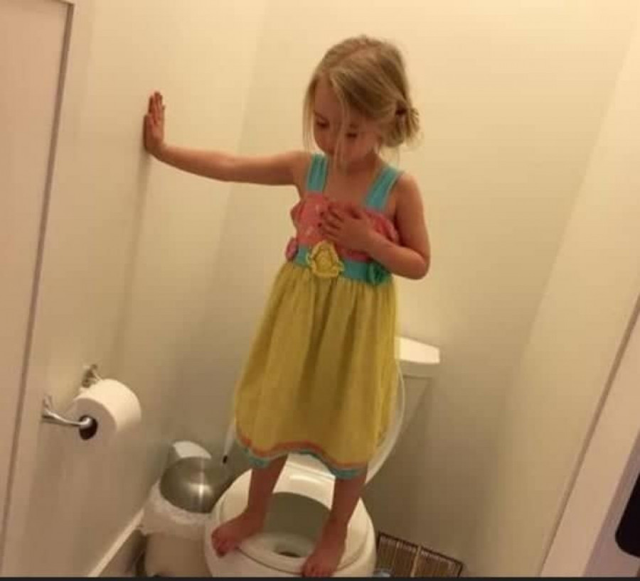 Jedna mama po imenu Stejsi Vermen Filej, mislila je da se i njena ćerka, poput druge dece igra i zabavlja, nakon što ju je zatekla na wc šolji. Raspoložena mama je brže bolje napravila fotografiju i poslala svom suprugu da mu ulepša dan.