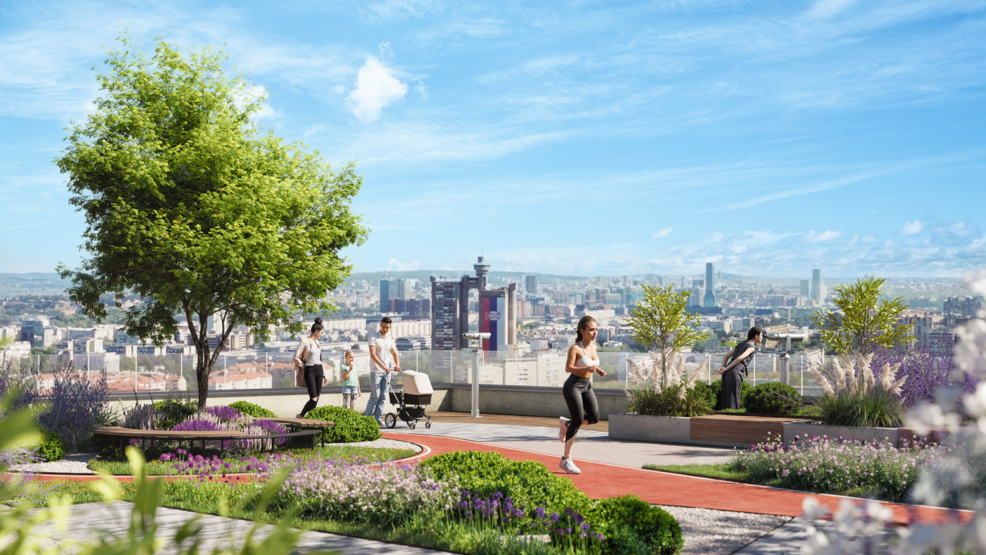 Prvi park na krovu u Srbiji površine 5.600 m² sa 350 m dugom atletskom stazom.