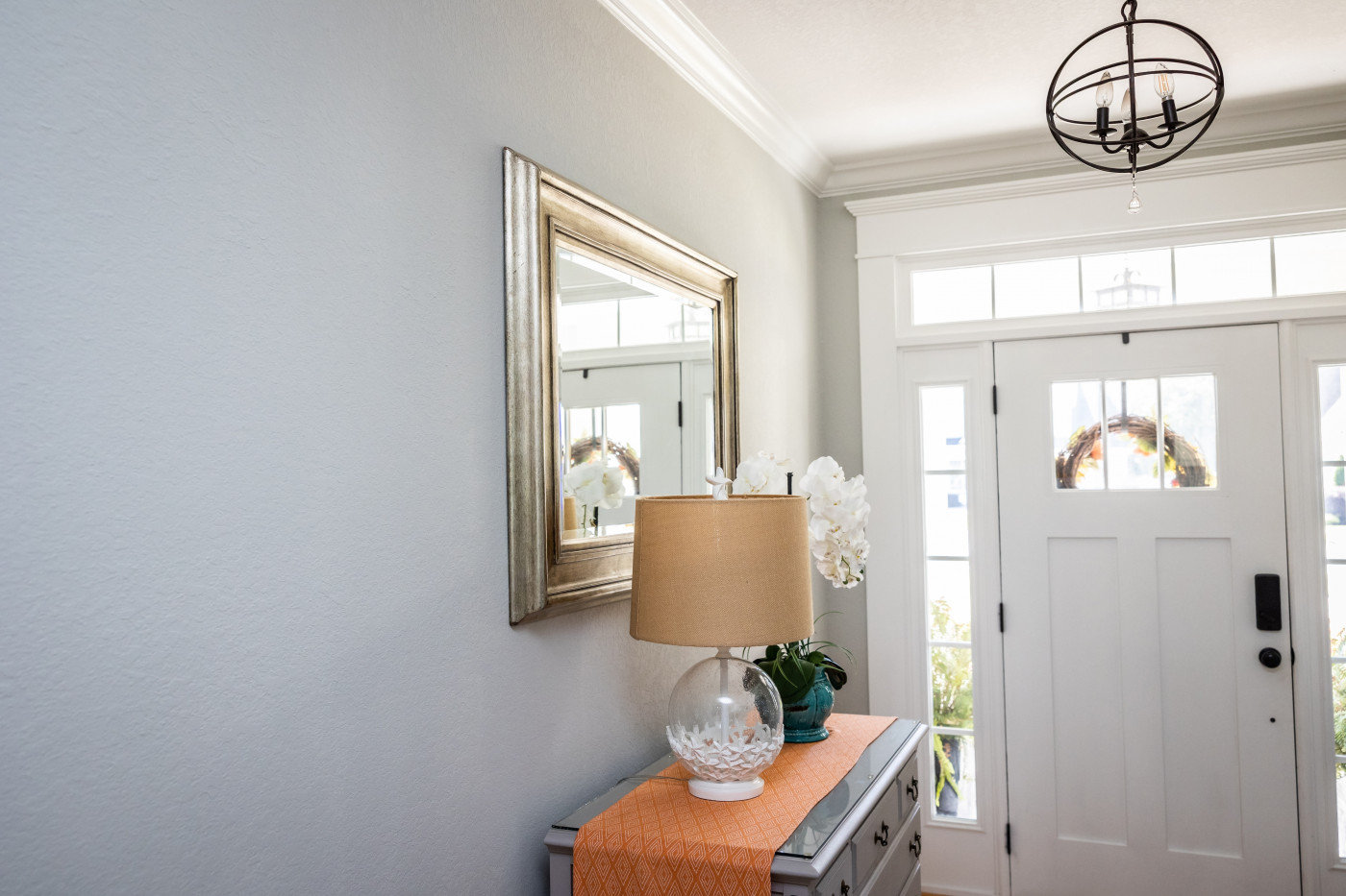 Jedan od čestih detalja koji se često nalazi pored ulaznih vrata je ogledalo. Međutim, postavljanje ogledala direktno naspram ili tik uz ulazna vrata smatra se nepovoljnim u feng šuiju. Ovakav raspored može "vratiti" energiju napolje, što znači da se ona, umesto da se zadrži u domu, odbija nazad.