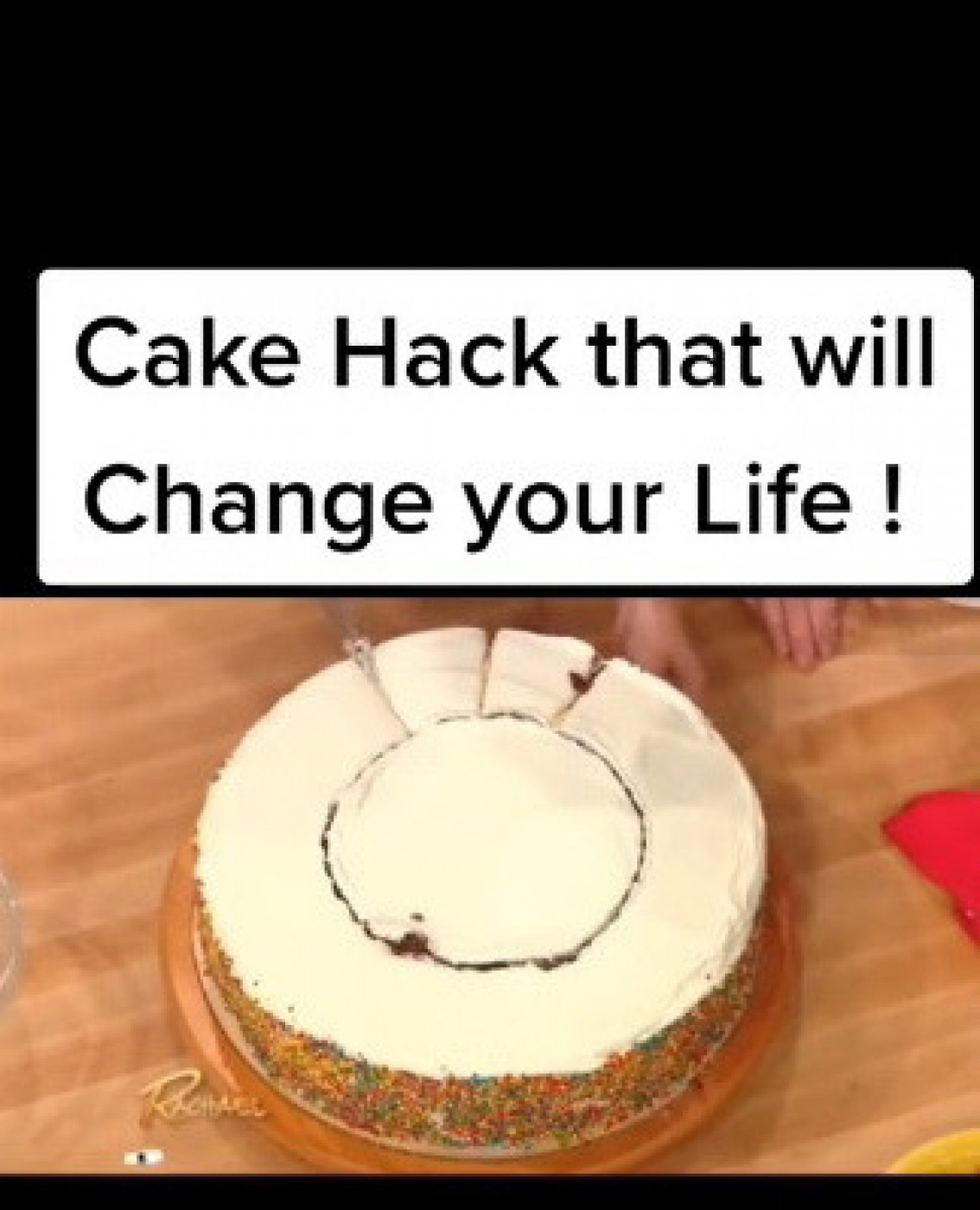 Na vrlo jednostavan način i u kratkom snimku ona je objasnila kako je usavršila veštinu sečenja torte da bi isečeni delovi bili jednaki. Suština je u stvaranju minijaturnog kruga unutar torte ili kolača. Pošto je želela da objasni šta pod time misli, ona je uzela jednu srednju činiju koju je naopačke stavila preko torte.