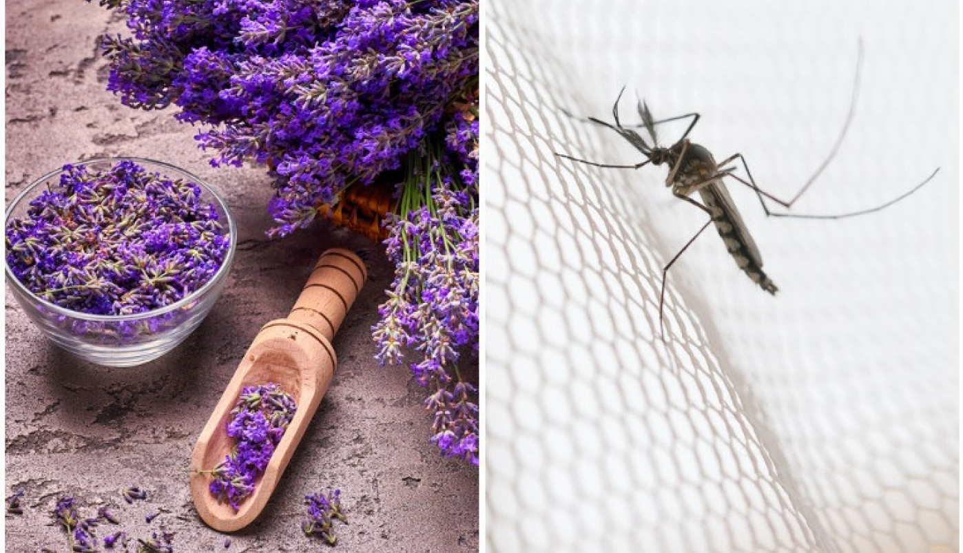 Zdrobljeni cvetovi lavande proizvode miris i ulje koji mogu da oteraju komarce. Lavanda ima analgetske, antifungalne i antiseptičke osobine, što znači da osim što sprečava ujede komaraca, može umiriti kožu. Studija iz 2002. godine rađena na miševima bez dlake otkrila je da je ulje lavande efikasno u odbijanju komaraca.