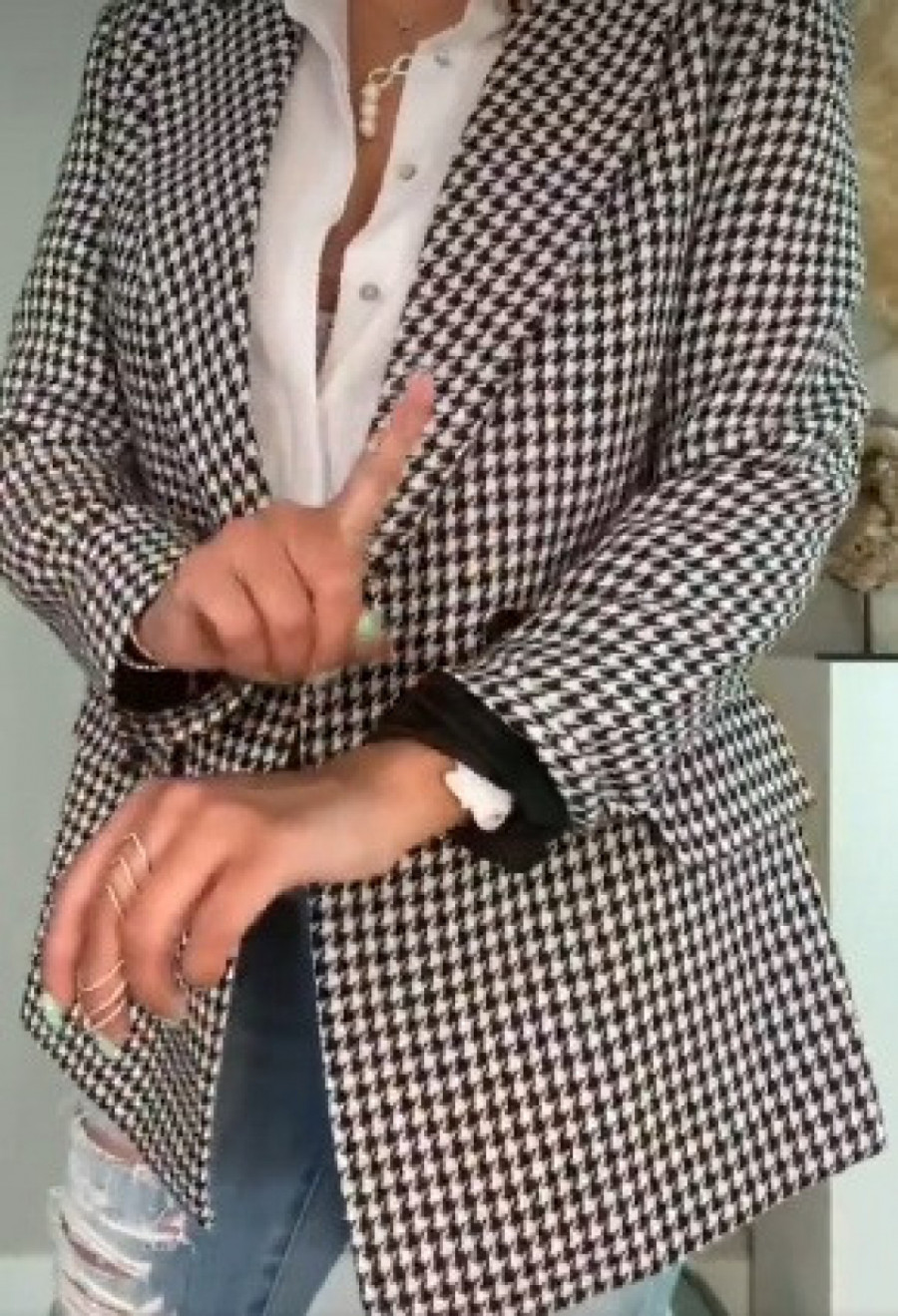 Kad su u pitanju predugački rukavi na blejzeru, umesto da jednostavno zavrnete rukave uzmite običnu gumicu za kosu koju sigurno imate i navucite je do lakta. Potom povucite rukav i višak materijala prebacite preko gumice kako biste je kamuflirala. I vola. Problem sa dugačkim rukavima je rešen.