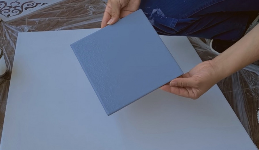 Nakon obavljene pripreme, nanesite prajmer na pločice u dva sloja, sa razmakom od 24 sata između nanošenja. Nakon prajmera i kada se on dobro osuši, vreme je za farbu u željenoj boji. U farbari kupite boju za keramiku, a trebaće vam i mali moher valjak za nanošenje.