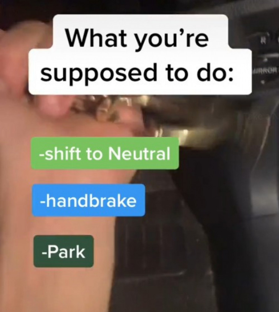 Izgleda da većina vozača celoga života parkira automobil pogrešno, a da toga nisu ni svesni. Tako je na TikToku snimak izvesne Emili postao viralan. Ona na videu pokazuje kako prilikom parkiranja prvo menjač brzina stavi u položaj za parkiranje, a potom digne ručnu kočnicu.