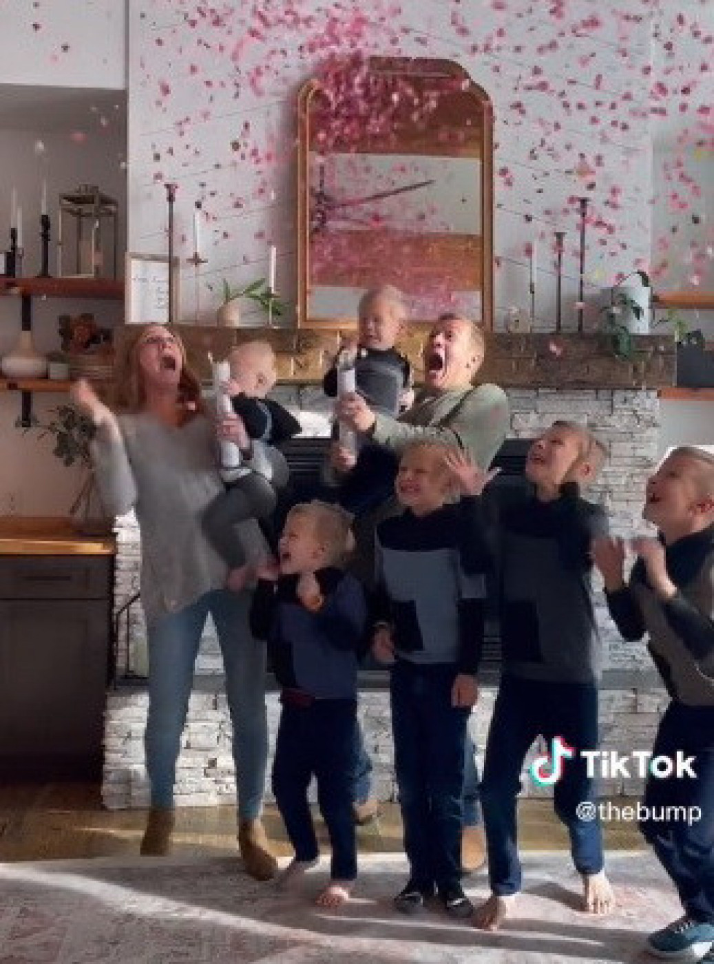 Roditelji sa šestoricom dečaka su sa nestrpljenjem pripremali zabavu povodom otkrivanja pola bebe kako bi saznali da li će im se priključiti još jedan dečak ili pak devojčica. Mama i tata su u naručju držali blizance dok su ostali dečaci bilo oko njih i sa iščekivanjem i nestrpljenjem čekali da vide koja boja konfeta će se pojaviti. Kada su se napokon raspršile i to u roze boji svi su počeli da skaču od sreće jer su saznali da će se njihovoj predivnoj porodici pridružiti devojčica. Ovaj trenutak je bio njemotivniji za majku koja se bukvalno za malo srušila na pod sa detetom u naručju.