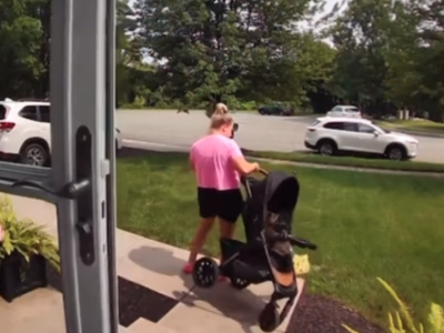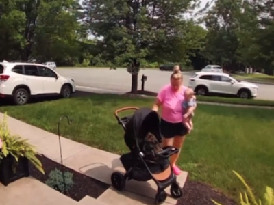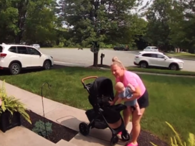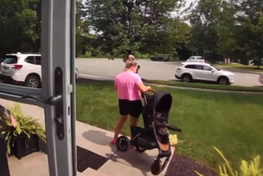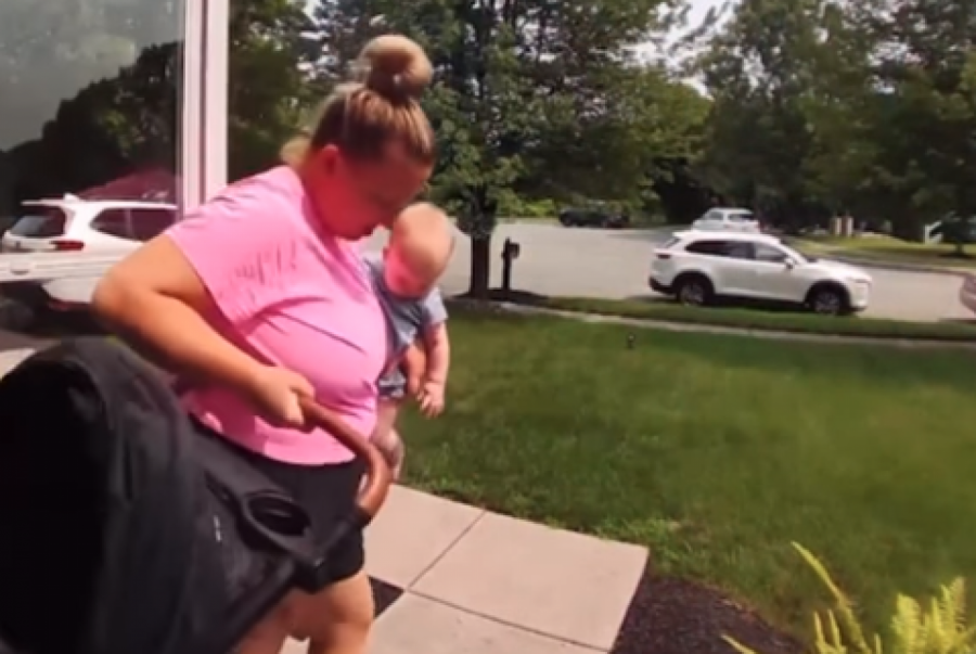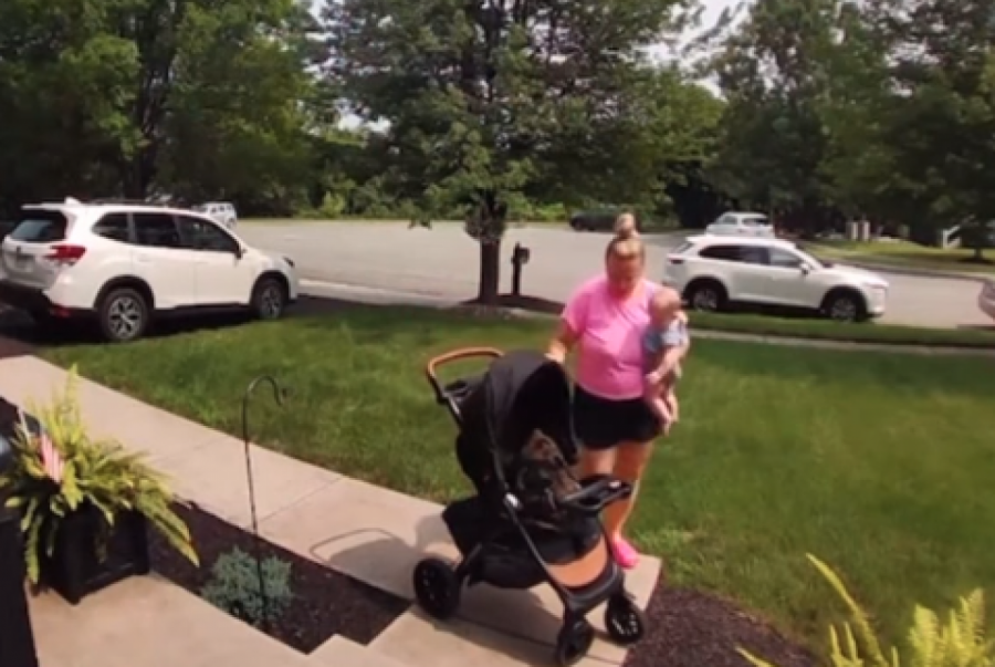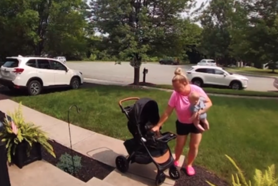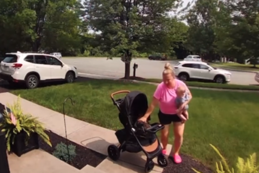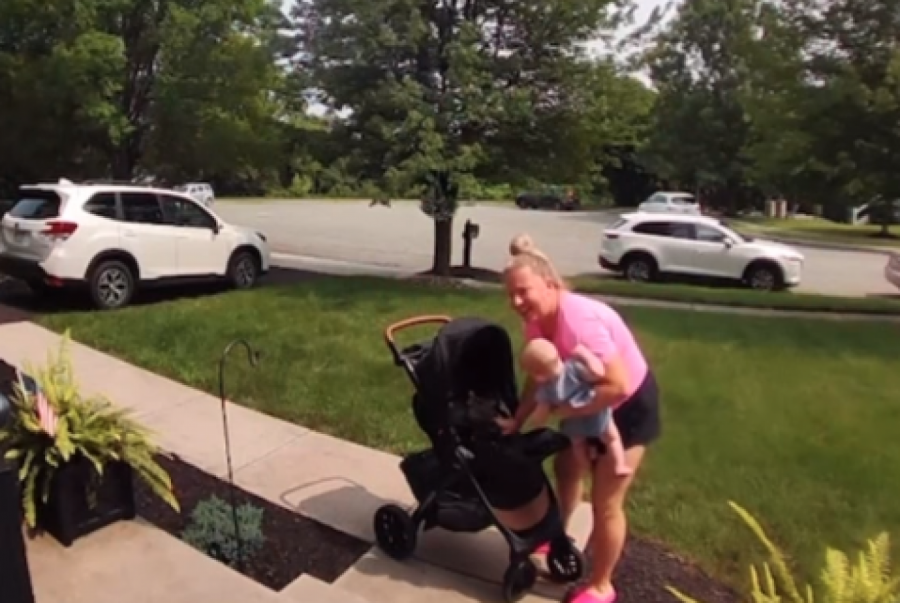 Upravo to se desilo i ovoj mami koja je rešila da prošeta bebu u kolicima. Bilo da je reč o tome da je želela da bebu prošeta pored kuće ili da ubaci kolica u auto i odveze se negde sa detetom, ovu mamu vidimo kako sve obavlja u žurbi. Ona očigledno negde kasni budući da nije imala vremena da iznese prvo kolica, pa bebu, već izlazi držeći dete u jednoj ruci, a vukući kolica u drugoj.