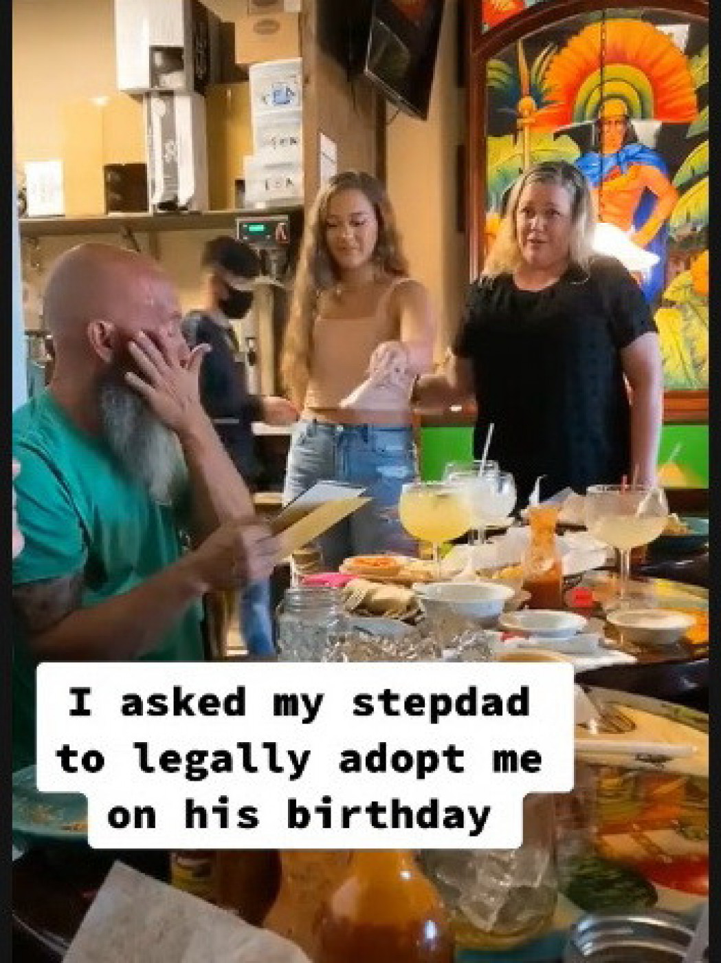 Budući da očuh nije očekivao ovakvo iznenađenje, dok je čitao pismo koje mu je pastorka uručila, u očima su mu se pojavile suze koje je neprestano brisao. Emotivni trenutak je dirnuo sve, a čovek je pokušavao da se suzdrži od osećanja koja su ga preplavila. Devojka je nakon određenog trenutka prišla i zagrlila svog očuha kao znak podrške i zahvalnosti. U opisu objave koju je podelila na mreži napisala je "zahvalna na čoveku poput njega". U pismu je tražila od njega i da je zakonski usvoji te da joj i papirološki bude otac.