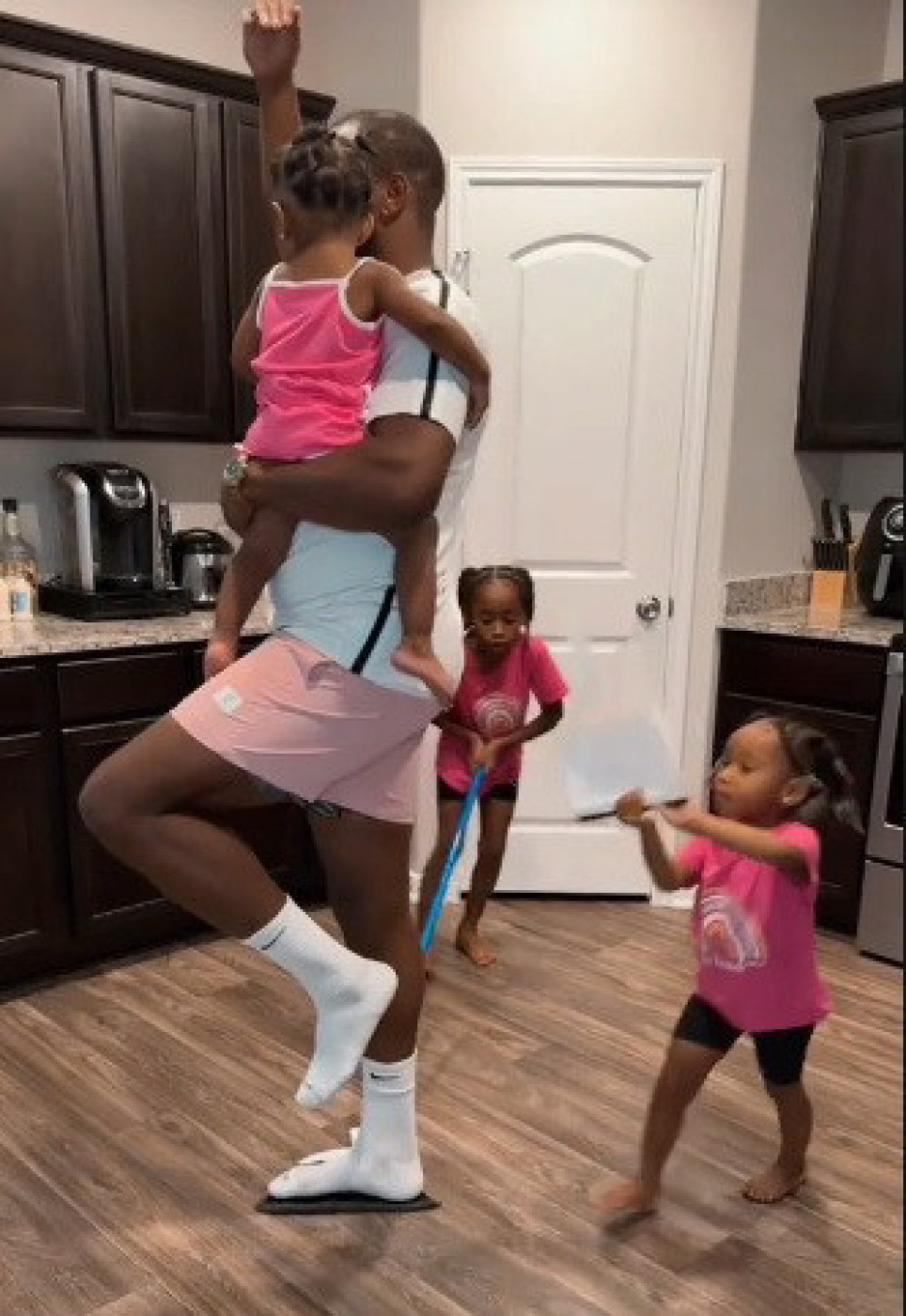 U objavi koja je sakupila 1,6 miliona sviđanja ovaj mladi tata pokazao je da za dobru zabavu, igru i smeh nije potrebno ništa više sem metle i lopatice i malo dobre volje. Dok je čuvao najmlađu ćerku u rukama sa podignutom jednom rukom iznad glave, druga ga je "navijala" lopaticom dok je stajao na metli koju je u krug vrtela treća, najstarija ćerka.