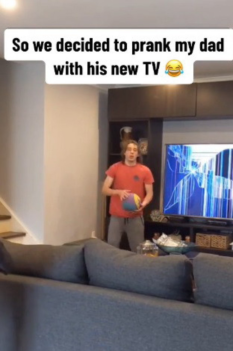 Na snomku koji je objavljen na Tik Toku vidi se mladić koji u ruci drži loptu. On i njegova sestra su na ekranu novog televizora postavili sliku polomljneog ekrana. Momak je snažno udario rukom o sto kako bi proizveo zvuk udarca lopte, a potom je povikao na sestru.