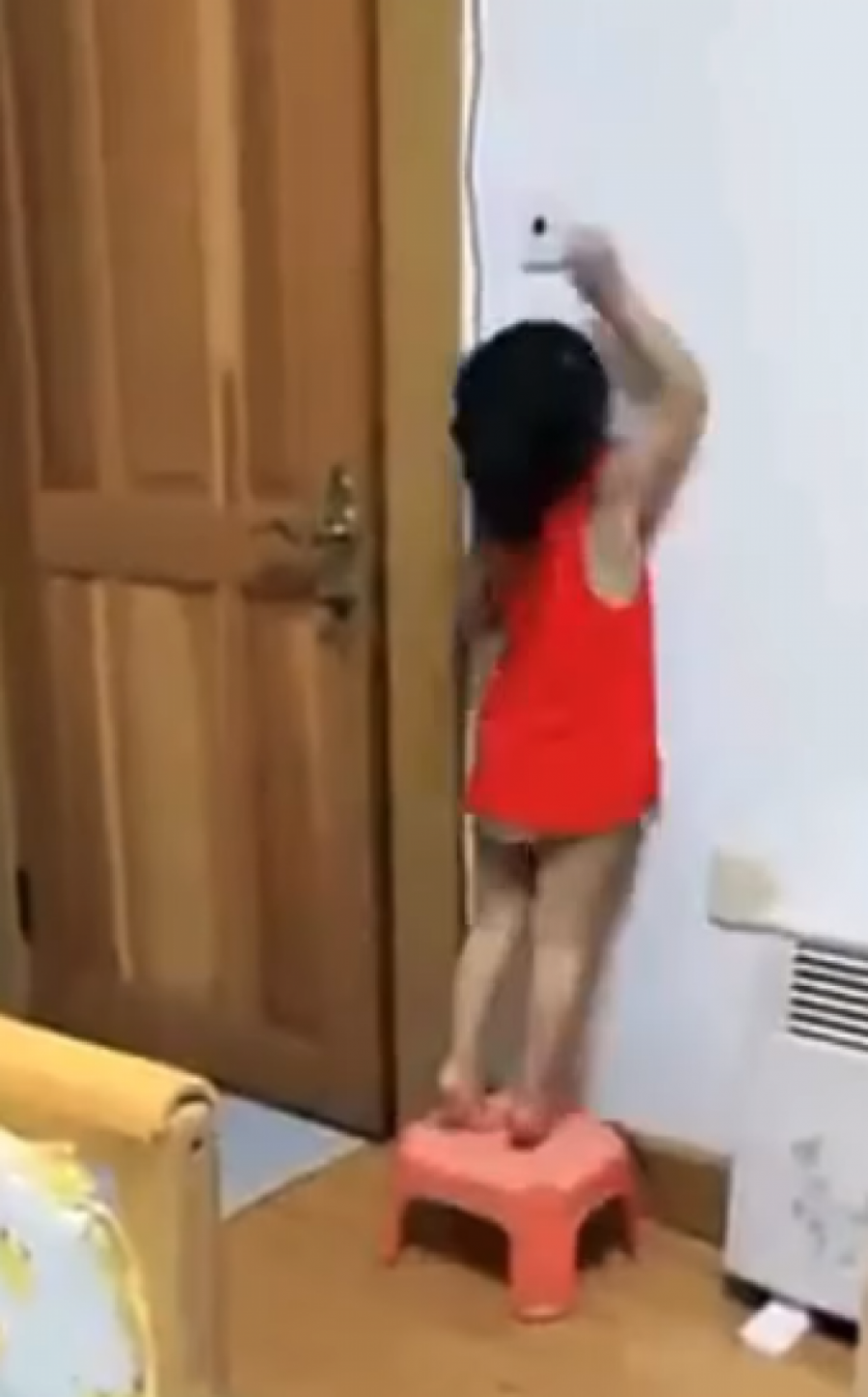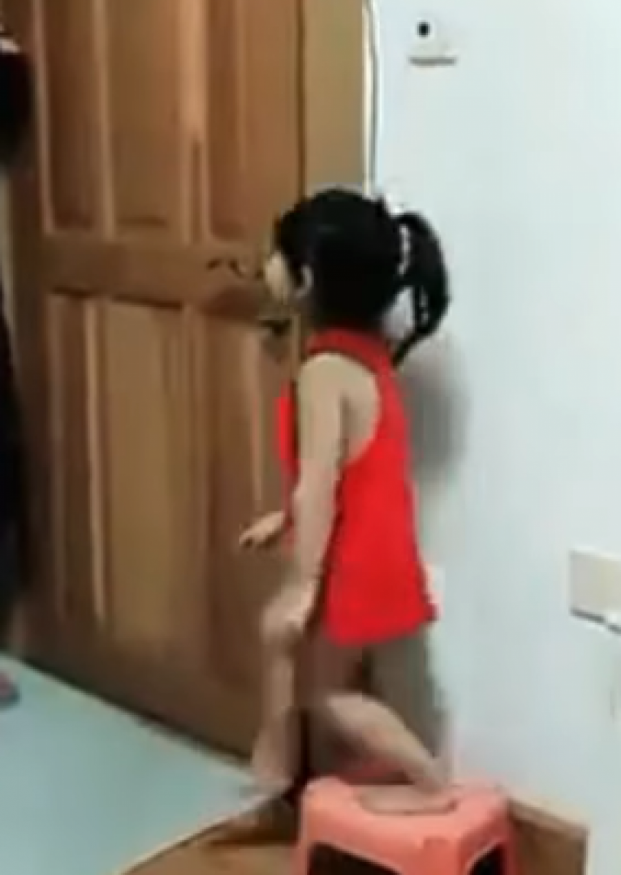 Dete kako je čulo zvuk zatvaranja vrata odmah ponovo izlazi iz kreveta i trči do zida kako bi ponovo uključila svetlo. Međutim, po uključenju svetla čeka je neprijatno iznenađenje. Naime, njeni roditelji su već navikli na njene nestašluke, pa je otac rešio da napravi trik kako bi proverio da li devojčica zaista spava. Ono što je ova devojčica u tom trenutku uradila, nasmejalo je mnoge. Ona se pravi da mesečari. Kako je uključila svetlo i videla tatu, ona kreće da žmuri, drži ruke pravo ispred sebe i kreće se ka krevetu, praveći se da mesečari.