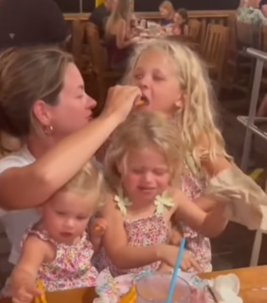 Snimak koje je osvanuo na društvenim mrežama i koji je pregledan milionima puta je iz jednog restorana u koji je došla petočlana porodica. Na jednoj strani je majka u čijem naručju se nalazi čak troje dece, tačnije tri ćerke. Dve mlađe ćerke sede u krilu ove žene, dok nastarija devojčica stoji pored mame, a upravo je ona ta koju mama hrani.