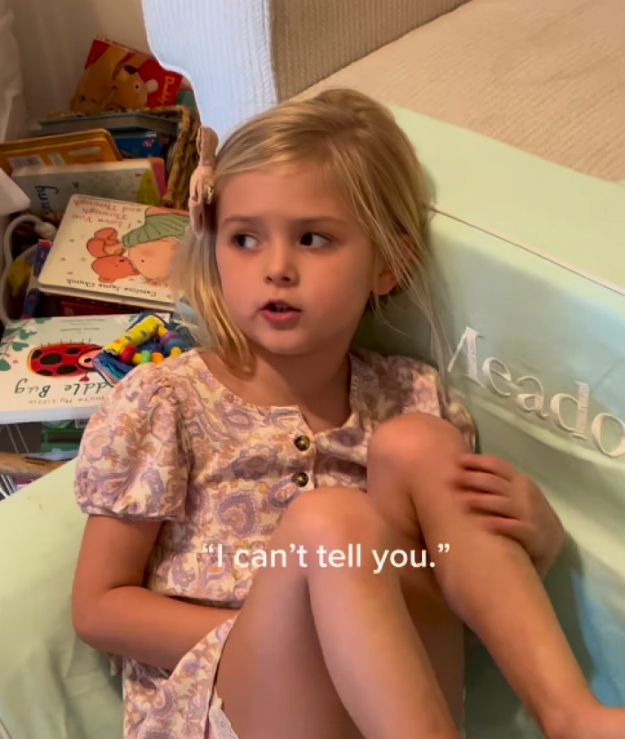 Plavokosa devojčica u cvetnoj letnjoj haljinici, bosonoga i sa mašnom u kosi vidno ljuta ulazi u dečju sobu dok je mama snima. Izgleda da je došlo do neke vrste nesporazuma između nje i tate. Naime ova malena ulazi u sobu i odsečnim rečima odgovara: “Zato što ga volim i tačka!” Njeni roditelji su vidno zapanjeni odgovorom, a mama je pita koga to ona voli. Devojčica teatralno ulazi u sobu dureći se i seda na krevet.