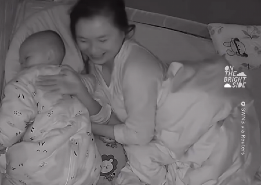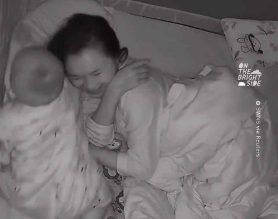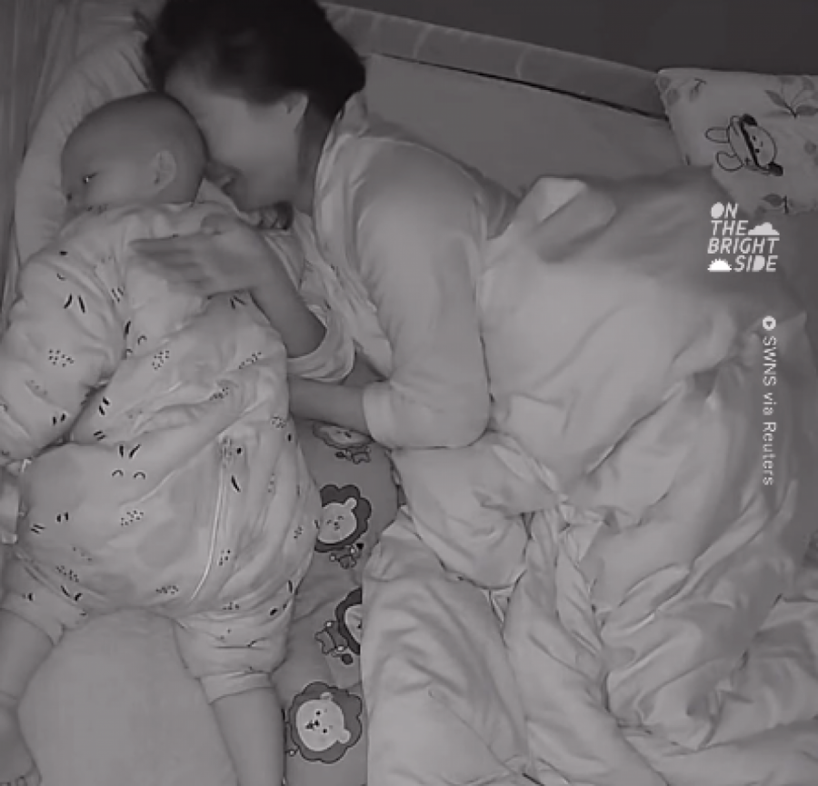 Pošto je mislio da je obavio posao, dečak se vratio kod mame u zagrljaj. Međutim, tata je i dalje nastavio da hrče. Sve ovo nasmejalo je i mamu. Mališan je ustao i hodao po krevetu, ponovo došašvši do tate. Dva puta vidno ga udario i to po licu. Situacija je bila veoma komična. Beba se potom vratila kod mame, a ono što je razgalilo mnoga srca je trenutak kada je beba zatražila maminu ruku kako bi zaspala.