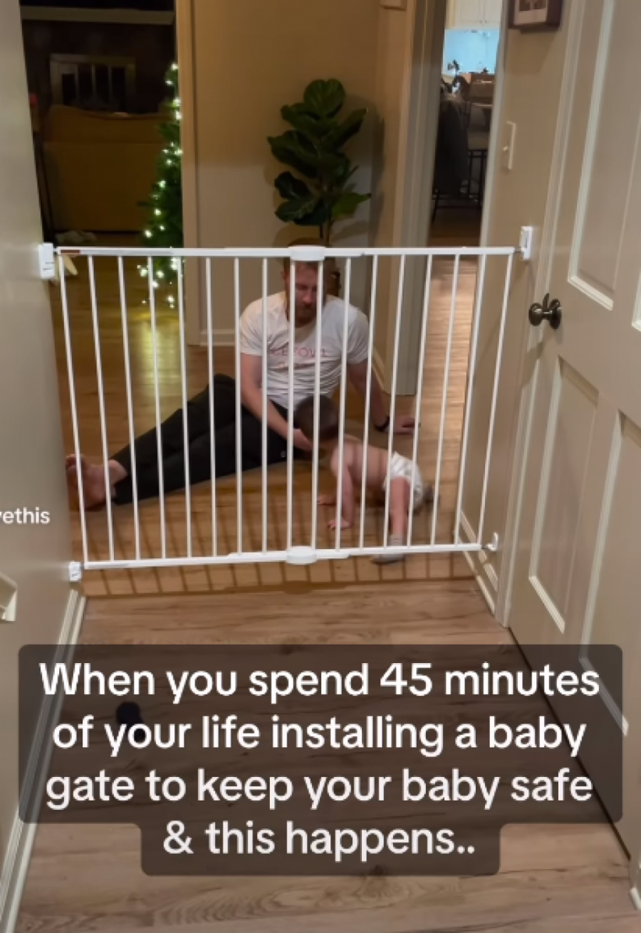 Jedan tata je punih 45 minuta nameštao ovu ogradicu, što i nije značajno izgubljeno vreme, ali izgleda da je nije postavio kako treba. Naime, on nije želeo da buši zid, pa je namestio ogradicu koja je bila podešena nešto više nego što bi inače trebalo da bude. Ovaj otac je smatrao da nekoliko centimetara više ne bi trebalo da bude problem. Ali, onda je usledilo nešto što je nasmejalo sve na Instagramu, a snimak je postao veoma rado gledan.