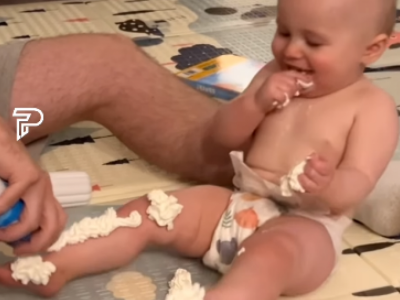 Roditeljima često nedostaje vreme koje bi kvalitetnije proveli sa decom, ali ovaj tata je uspeo da stvori nezaboravan trenutak sa svojom bebom. Video prikazuje tatu koji drži bocu šlaga i igra se sa svojim sinom koji ima oko nepunih godinu dana, tako što mu stavlja šlag na ruke i noge. U početku zbunjena, beba je ubrzo počela da uživa u igri, što je izazvalo njene glasan smeh svaki put kada bi mu tata stavio šlag na ručicu, list ili butinu.
