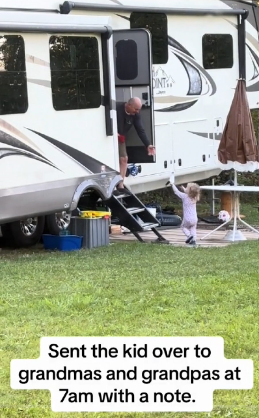 Devojčica je krenula prema kamp prikolici, gde ju je na vratima dočekao deda. Iako porodica obično živi 20 minuta udaljeno, tog dana su svi kampovali na istom mestu, što je omogućilo ovaj simpatičan trenutak. Deda se nasmejao čim je pročitao poruku, a ubrzo je i baka, koja je pila kafu unutra, pritrčala mališanki.