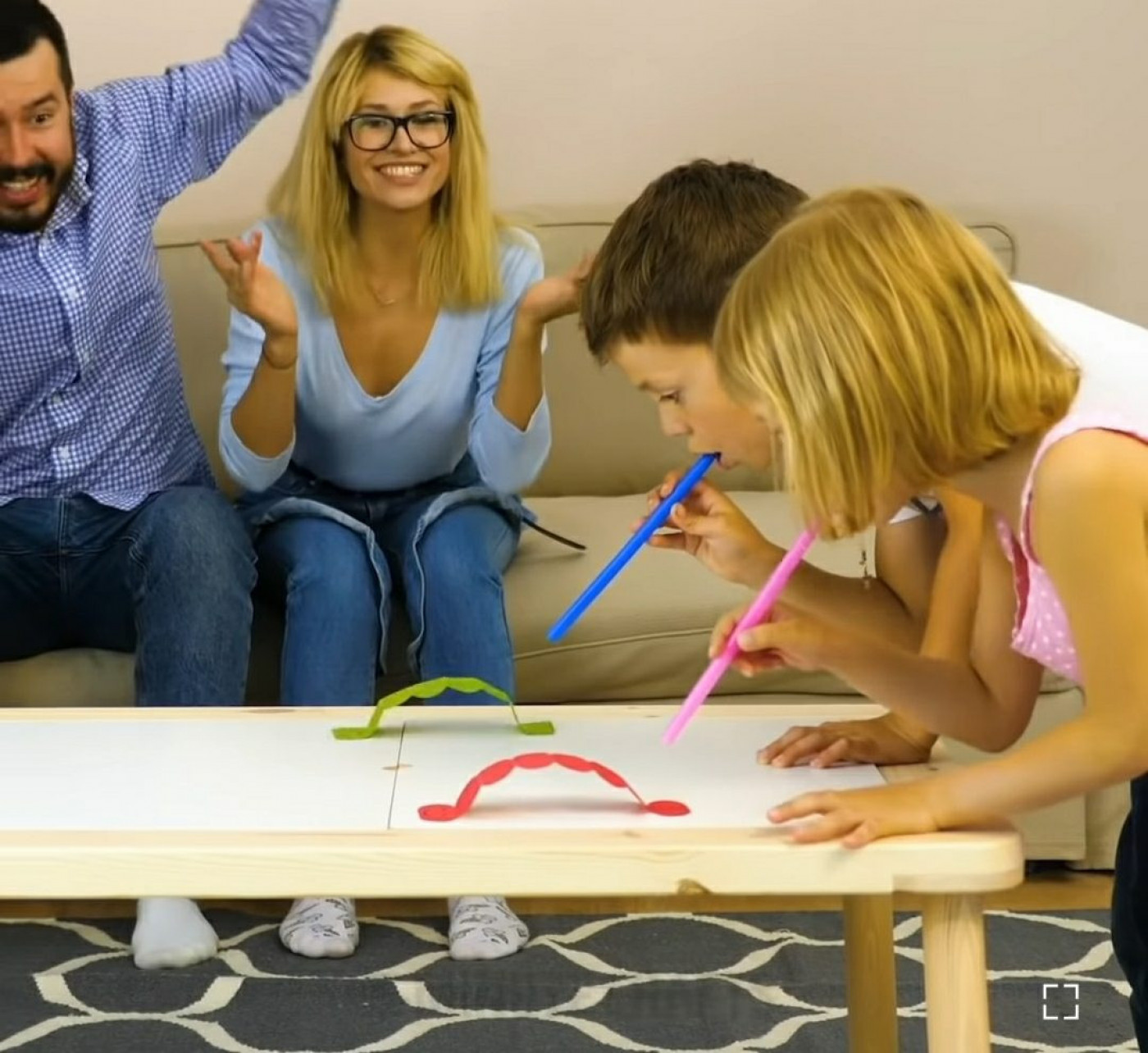 Uzmite papir zelene boje, širine 5 cm i na vrhu nacrtajte sitne oči. Presavijajte ga u širini prsta kako biste dobili "harmoniku", a na kraju ćoškove isecite blago polukružno. Kad razvučete papir dobićete gusenicu. Istu takvu možete napraviti u drugoj boji za nekog drugog ko će učestvovati u igri. Trka gusenica se igra tako što ih stavite na sto ili pod i uz pomoć cevčice i vazduha ih pokrećete kako bi jedna pretekla drugu. Eto sjajne zabave za mališane.