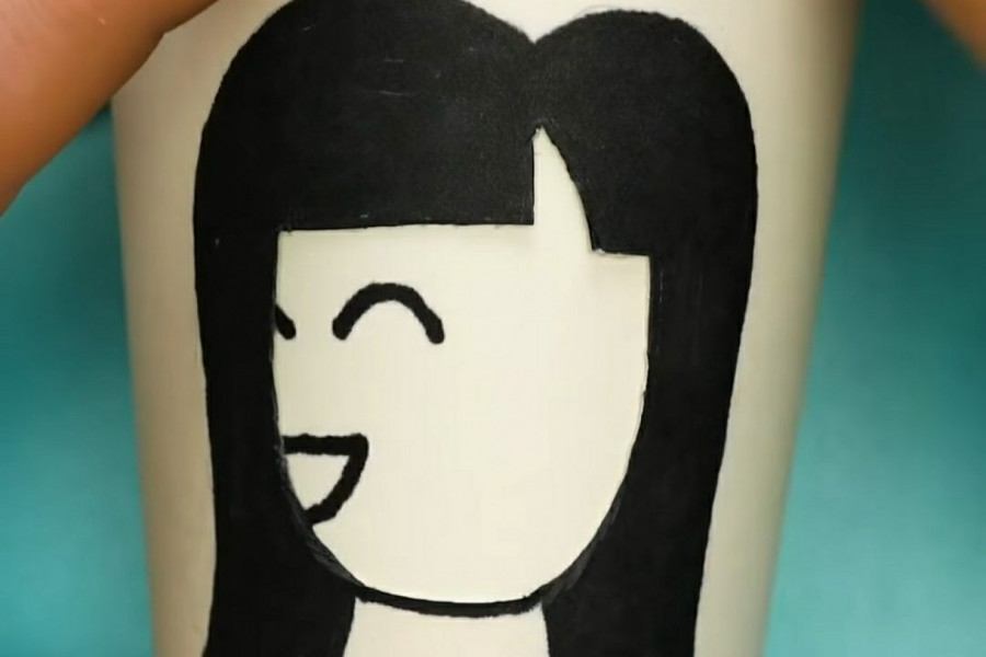 Ova igračka će oduševiti najmlađe ukoliko vole kada ih zasmejavate praveći grimanse. Za nju su vam potrebne dve plastične bele čaše, makaze i crni flomaster. Nacrtajte glavu devojčice i obojte joj kosu u crnu ili neku drugu boju po izboru. Isecite lice devojčice na čaši tako da ostane samo kosa. U istoj visini gde ste crtali glavu, na drugoj čaši nacrtajte na različita mesta različite emocije, odnosno izraze lica, poput radosti, iznenađenja i tuge. Stavite tu drugu čašu u prvu i okrećite u zavisnosti koju emocije želite da pokažete.