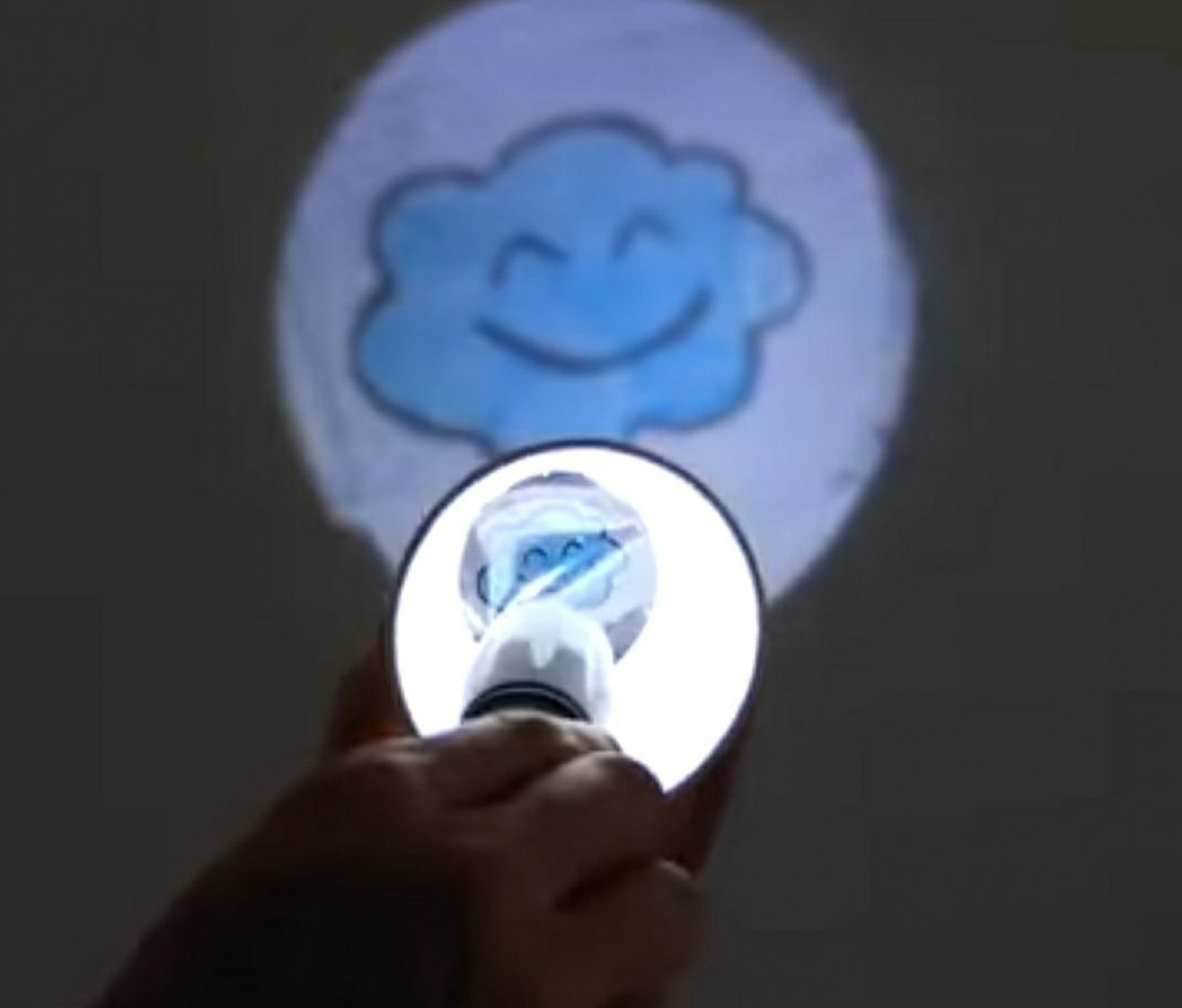 Na prethodno isečenom dnu plastične čaše, zalepite providnu folijicu na kojoj je vaš mališan nacrtao nešto. Recimo, nasmejani oblačak. Ugasite svetlo i okrenite čašu ka zidu uperući u nju upaljenu lampu. Vaše dete biće oduševljeno projekcijom svog crteža na zidu.