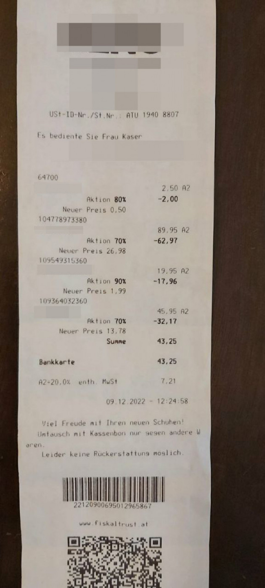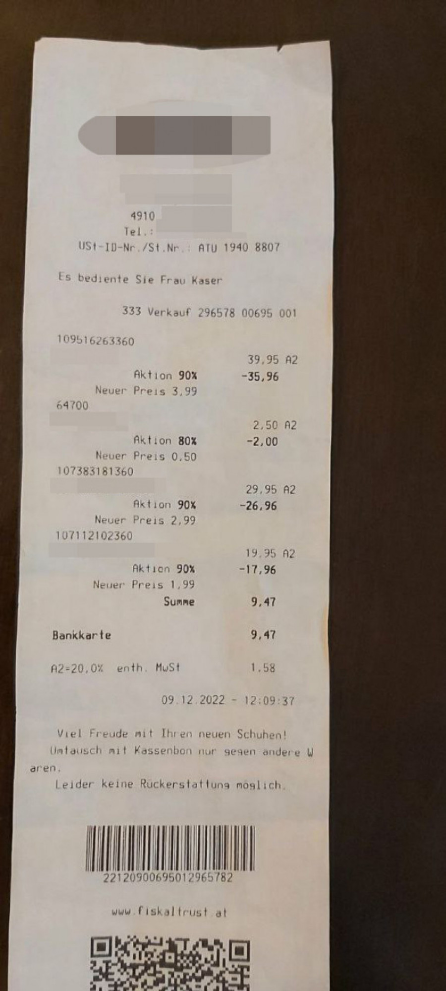 Na početku, jedva smo došli na red. Građani su pohrlili u kupovinu i pitala sam se zbog čega su gužve tako velike kada je standard Austrijanaca uglavnom dobar i oni ne moraju da trguju na akcijama. Došavši do polica sa obućom, sve mi je bilo jasno. Mislila sam da ne vidim dobro jer sam, gledajući u deklaracije na kojima su bile ispisane cene, videla da su mnogi artikli sniženi i do 90 odsto.
