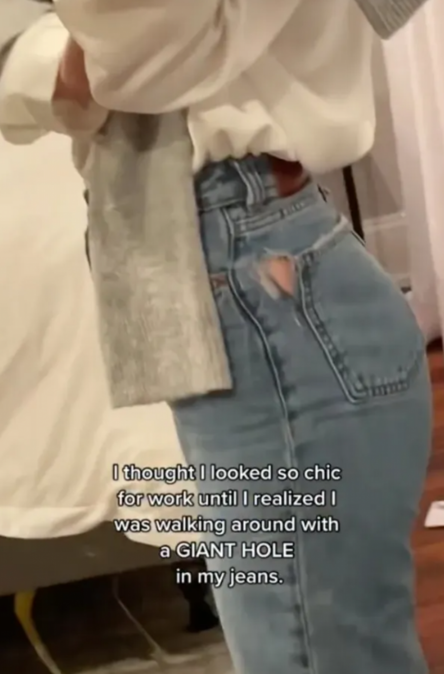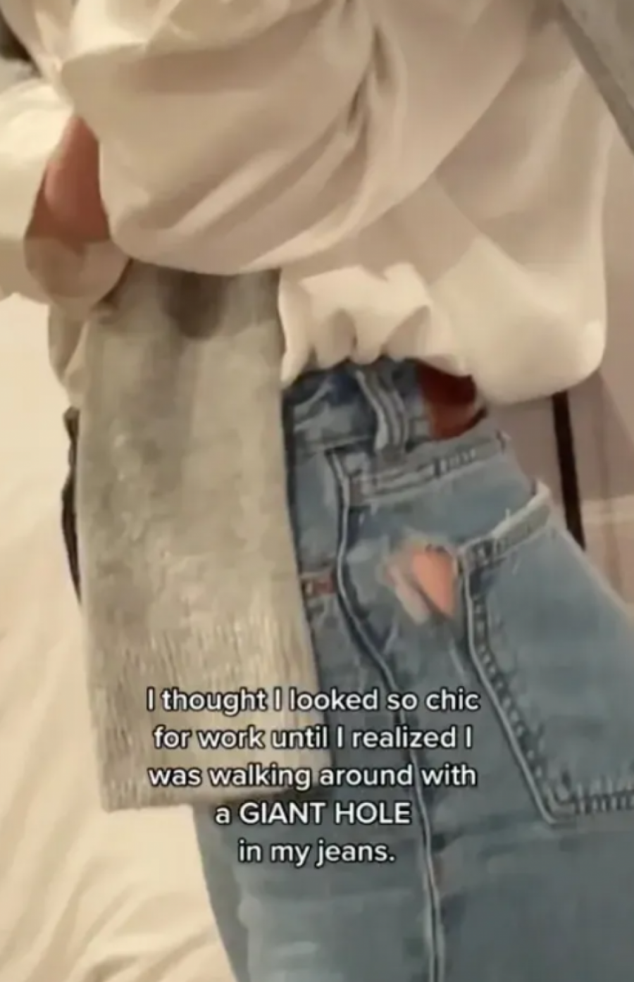 - Mislila sam da izgledam toliko šik za posao, dok nisam primetila da sam šetala sa ogromnom rupom na farmerkama - kartko je napisala iznenađena tiktokerka, a o njoj je pisao i San.
