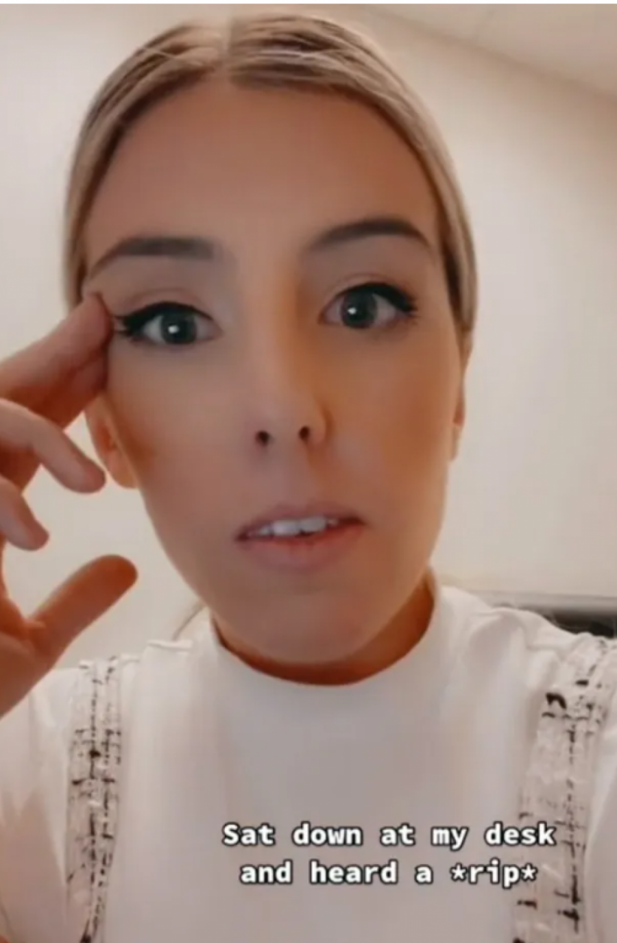 Kenzi je Tiktokerka koja na ovoj društvenoj mreži deli savete u vezi lepote, mode i fitnesa. Ona voli da se lepo oblači na radnom mestu, pa je tako nedavno ponela belu majicu i haljinu koja je bila u vidu tregera i suknje. Kosu je vezala u punđu dok je imala svedeniju šminku koja je istakla njene oči. Kenzi je zadovoljno došla na posao, a onda sela za svoj radni sto, ali baš u tom trenutku usledila je velika neprijatnost.