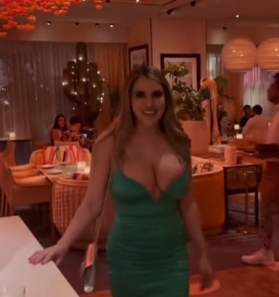 Šantel se za tu posebnu priliku odlučila za zelenu mini haljinu koja je imala veoma dubok dekolte istučući njeno bujno poprsje. Kreacija je išla tik uz telo, pa su i duge noge ove Tiktokerke kao i savršena linija došli do izražaja. Ova dama je uz zelenu atraktivnu haljinu uparila zlatne sandale dok ju je prijateljica snimala. Niko se nije nadao da će svega neki minut kasnije uslediti prava katastrofa.