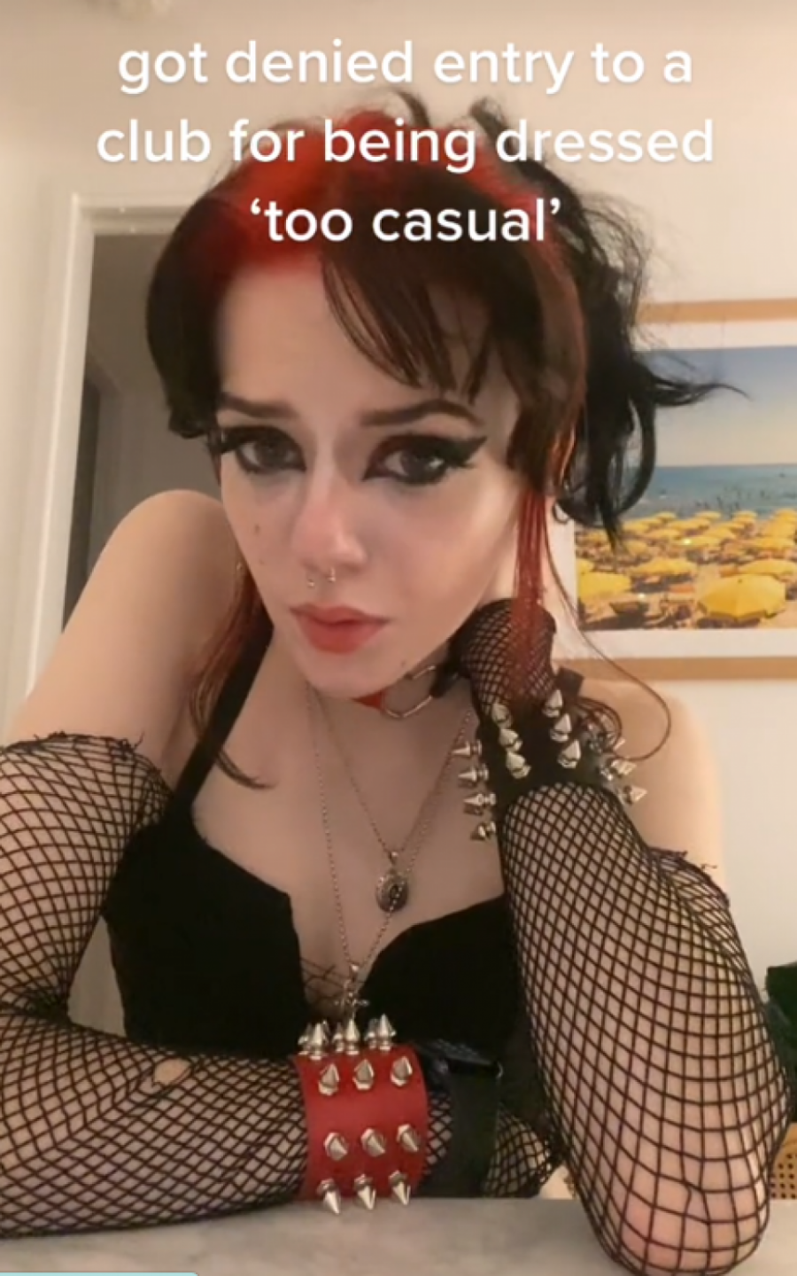 Međutim nedavno joj je nije dozvoljen ulazak u jedan klub upravo zbog njene garderobe. Red nije znala šta je u pitanju, budući da je bila scenski našminkana, dok je njena kosa bila u nijansama crnih i jasrkocrvenih pramenova. Imala je crni korset i rukave od crne mrežice koji su padala sa ramena, otrivajući ih. Celu kombinaciju je začinila ogrlicom od poludragog kamenja i još jednom koja je imala privezak u vidu jedra u boji zlata, dok je imala crveno-crnu čoker ogrlicu i kožnu crnu i crvenu narukvicu sa bodljama. Izgleda da to nije zadovoljilo ljude na ulazu koji su joj zabranili dalji prolaz.