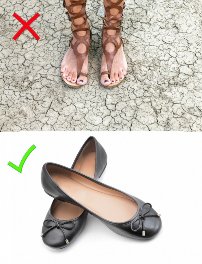 Sandale poznate kao rimljanke na velika vrata su vratile u modu. U pitanju su ravne sandale sa kaiševima koji se "penju" do polovine listova. Ova vrsta cipela nije za žene sa debelim nogama jer će se kaiševi useći u listove što je biti vrlo ružno, ali i neprijatno za hodanje. Umesto toga birajte baletanke koje laskaju ženama sa vitkim nogama i najbolje ih je nositi sa kratkom suknjom.