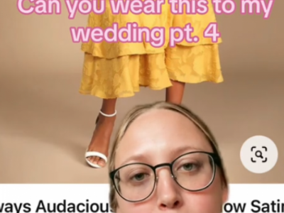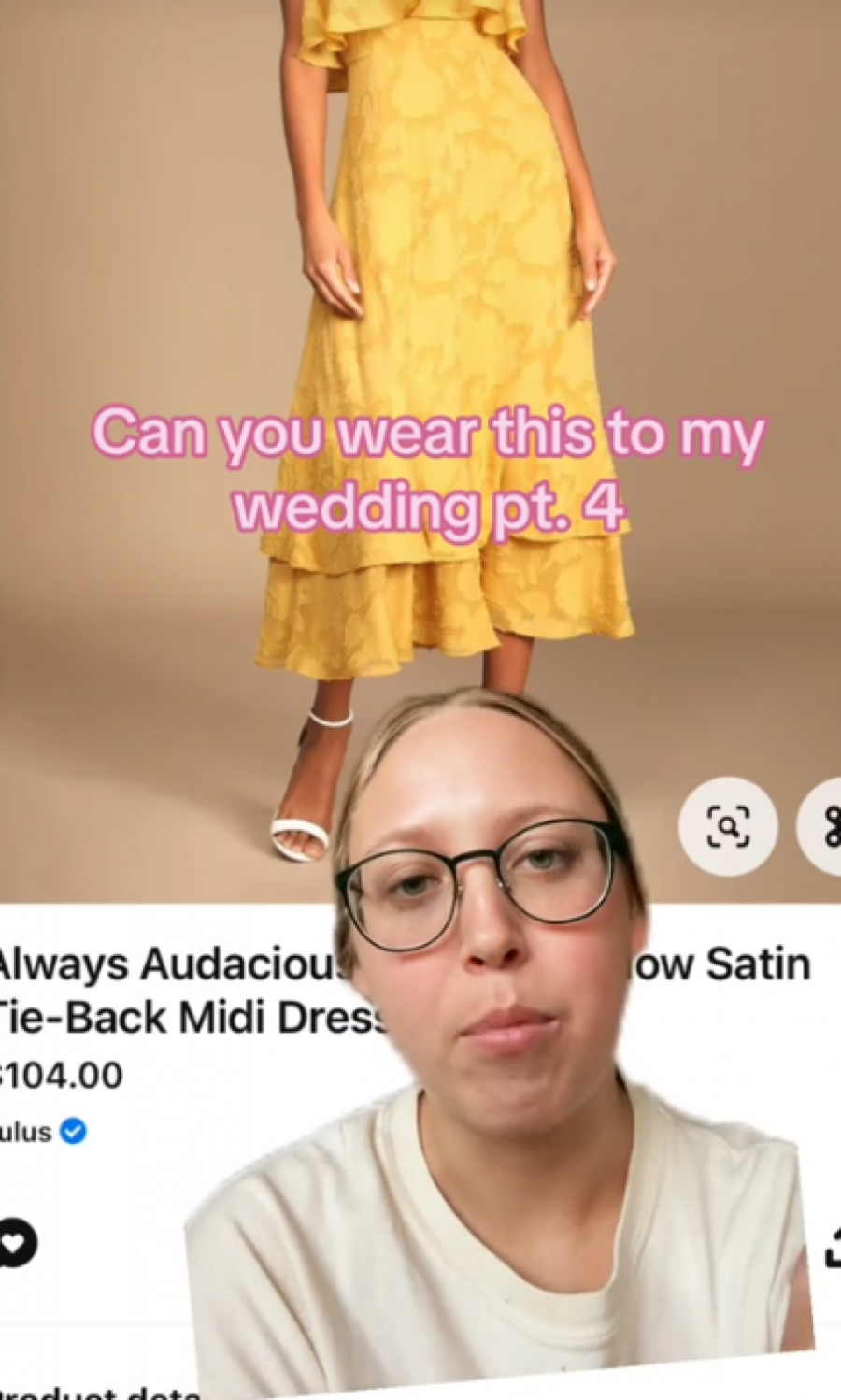 Buduća mlada je podelila svoje mišljenje o nekoliko haljina na snimku na Tik-toku, ali je zbog videa su se odmah razvile dve struje mišljenja. Prva od haljina koju je Abigejl odobrila bila je žuta svilenkasta midi haljina sa vezivanjem na leđima, kao i bebi roze haljina sa dekolteom. Dodala je da u stajlinge koje bi poželela na gošćama bude što više haljina jarkih bola poput žute, narandžaste ili pink, cvetni dezeni takođe dolaze u obzir, kao i sve dužine od mini do maksi.