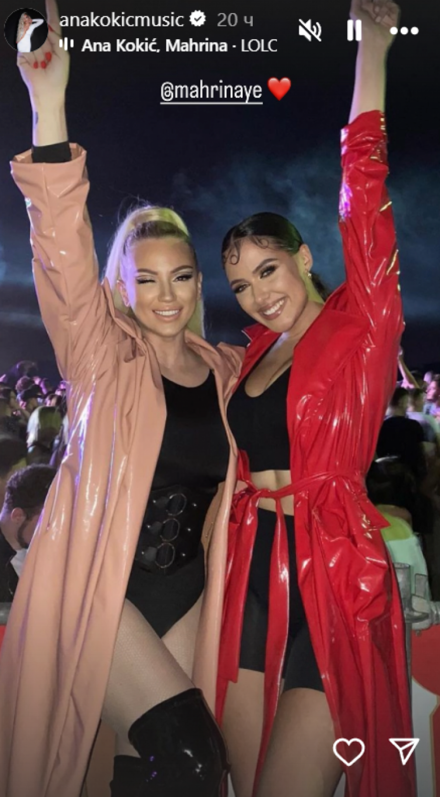 Pevačica Ana Kokić (41) objavila je fotografiju sa pevačiom Mahrinom i oduševila mnoge. Ona se na nastupu pojavila u trikou koji je bio zatvoren u predelu grudi i dugih rukava, iako je otkrivao vitke noge zgodne pevačice. U struku je imala neobičan širi pojas, dok je ponela i duge lakirane čizme koje su dosezale do preko kolena, a imala je i duži lakirani mantil u pastelnoroze boji.