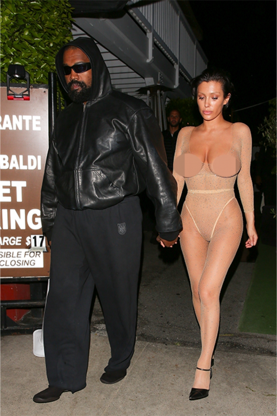 Njen suprug poznati reper Kanje Vest bio je u društvu i u potpunosti odeven u klasičnu crnu kombinaciju. Dok je Bjanka odabrala skoro golišavi izgled, Kanje je bio obučen u kožnu jaknu s kapuljačom, crne pantalone i crne naočare za sunce, prenosi San.