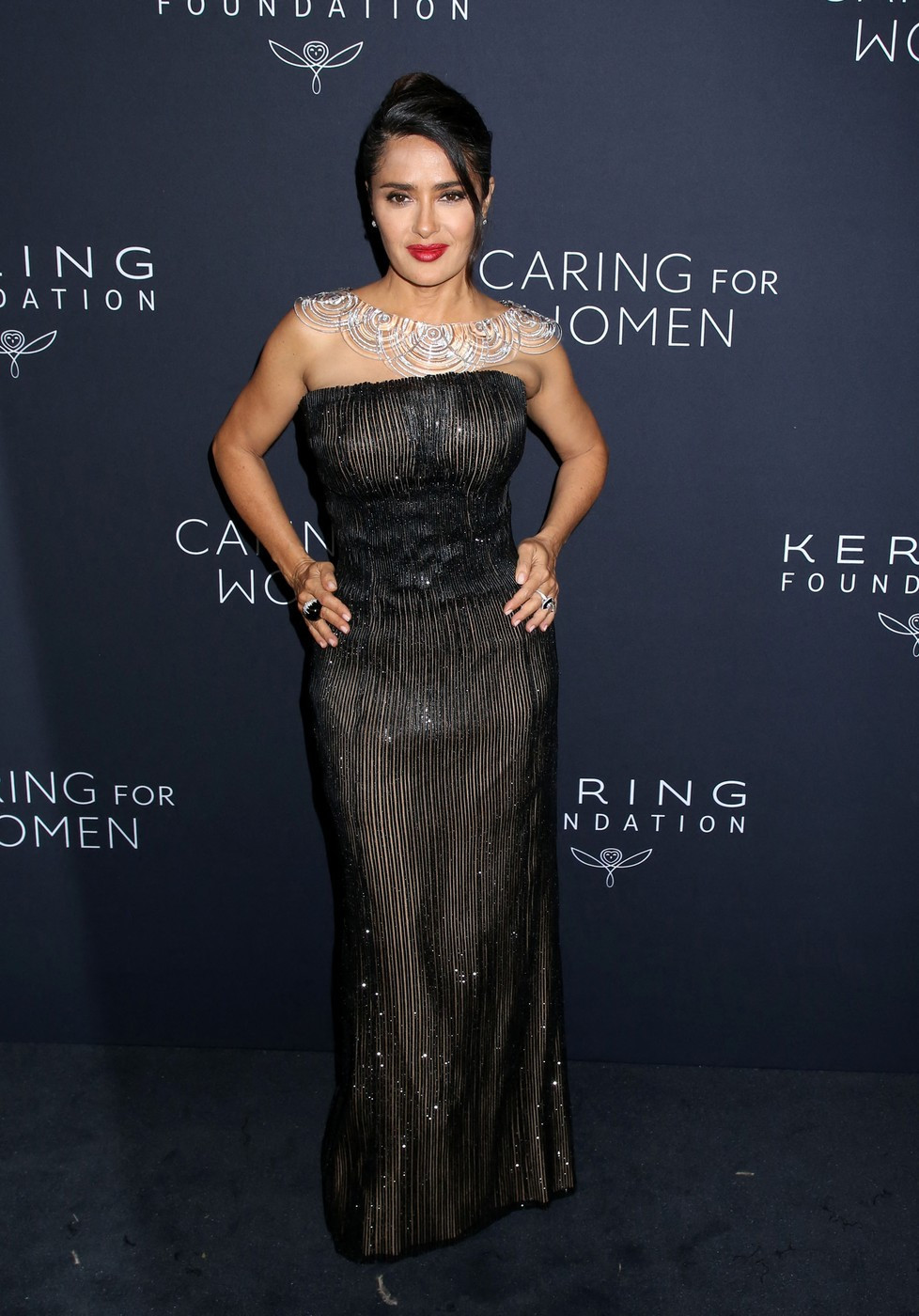 Salma Hajek oduševila je u blistavoj crnoj haljini dok je u ponedeljak prisustvovala godišnjoj večeri Caring For Women zajedno sa svojim suprugom, generalnim direktorom Fransoa-Anrijem Pinoom.