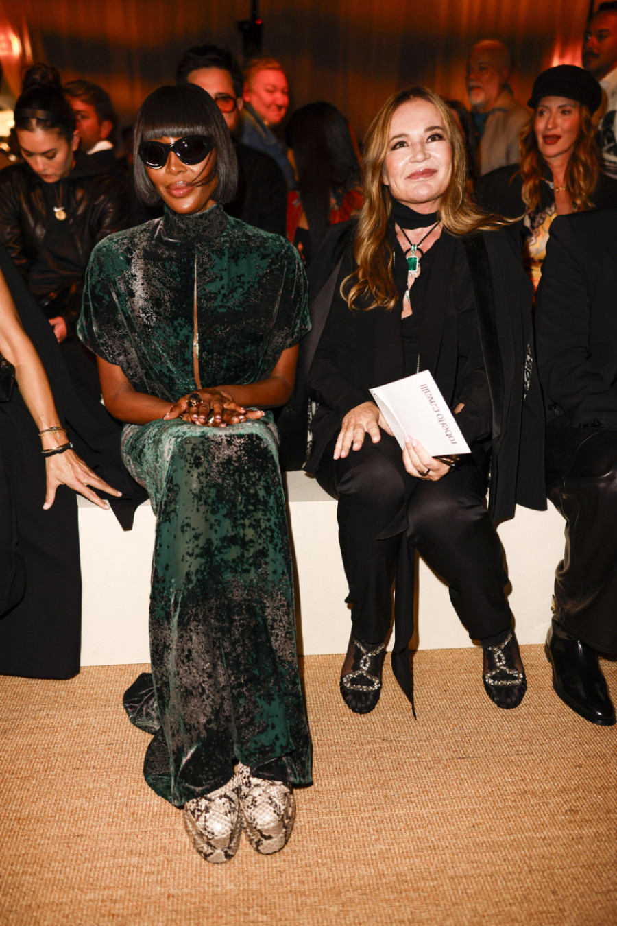 Međutim, niko nije gledao u njene gole grudi već u noge, tačnije neobične cipele koje je ponela slavna Britanka. Ona je na nogama imala vrlo neobične i potpuno zatvorene cipele, sa platformom i zmijskim pritom. Čak i kad sedi u publici Naomi je glavna zvezda i ukrala je šou manekenkama koje su su hodale pistom.