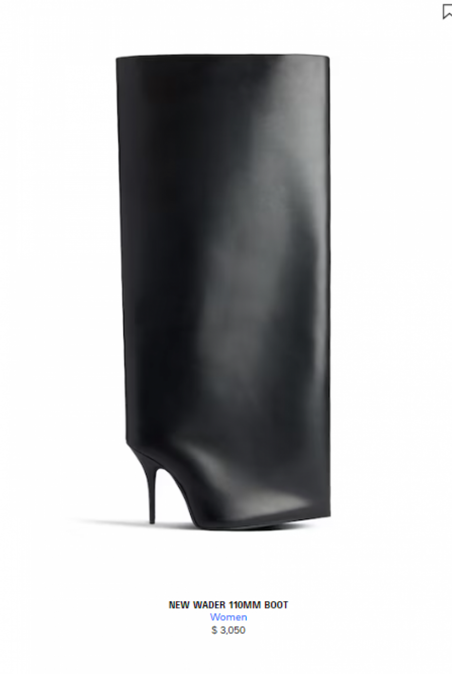 Stajling je upotpunila skupocenom crnom torbicom brenda YSL, dok su pažnju privukle neobične crne čizme brenda Balenciaga. One su dosezale do kolena, a u najkraćim crtama bi se opisale kao široke zvonaste nogavice pantalona koje prekrivaju obuću, dok ni tanane visoke štikle nisu izostale. Ovaj model čizama prodaje se po ceni od oko 3.000 evra, tačnije 3.050 dolara.