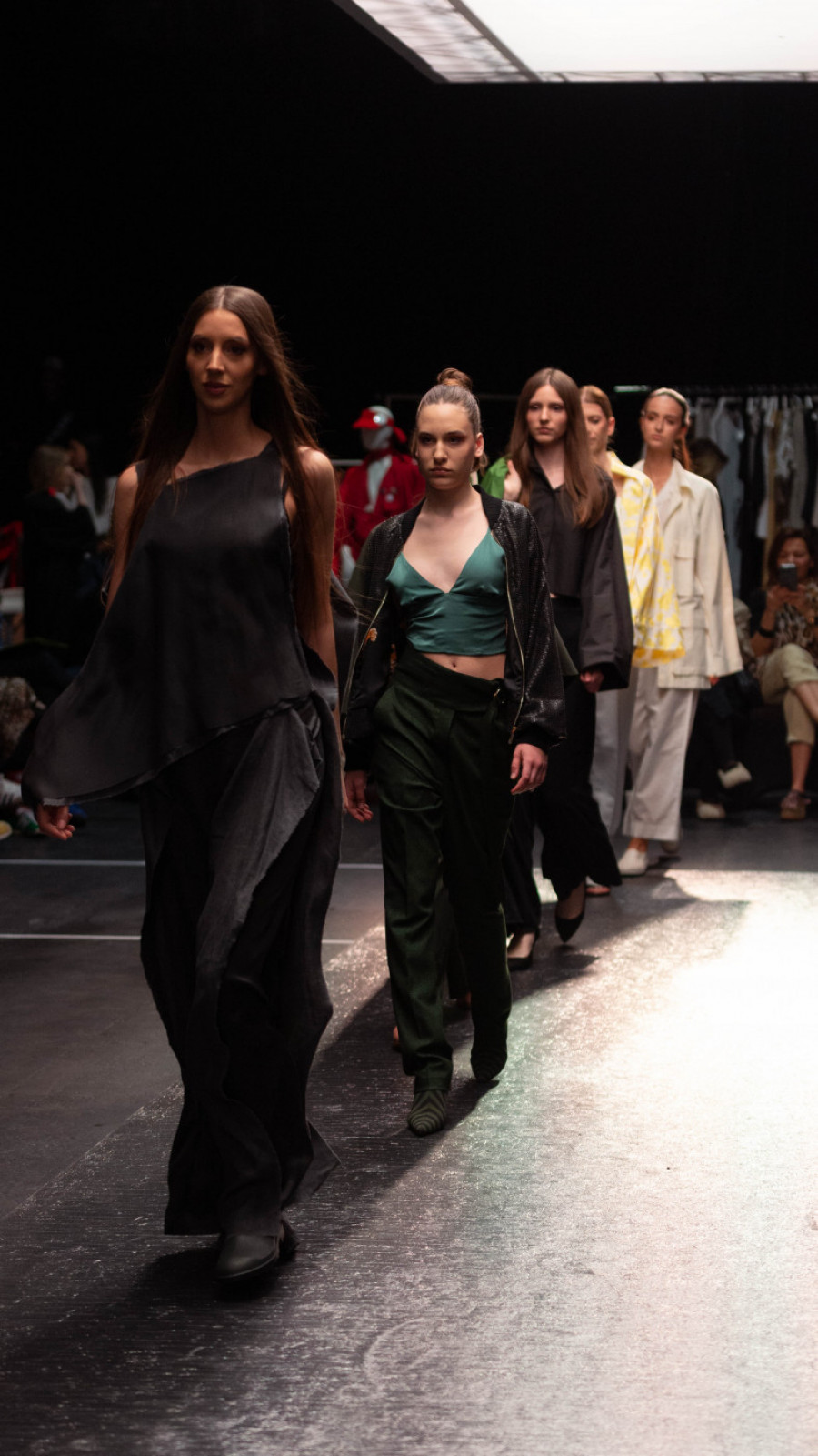 Dizajnerka Sonja Jocić sa brendom ZeroWaste predstavila je kolekciju „Black Multifunctionality“, realizovanu u potpunosti kroz zero waste metodologiju. Svaki komad je pažljivo promišljen, sa modularnim pristupom inspirisanim origami tehnikama. Multifunkcionalnost je osnovna vrednost kolekcije, komadi se mogu okretati, preklapati, oblikovati prema želji nosioca.