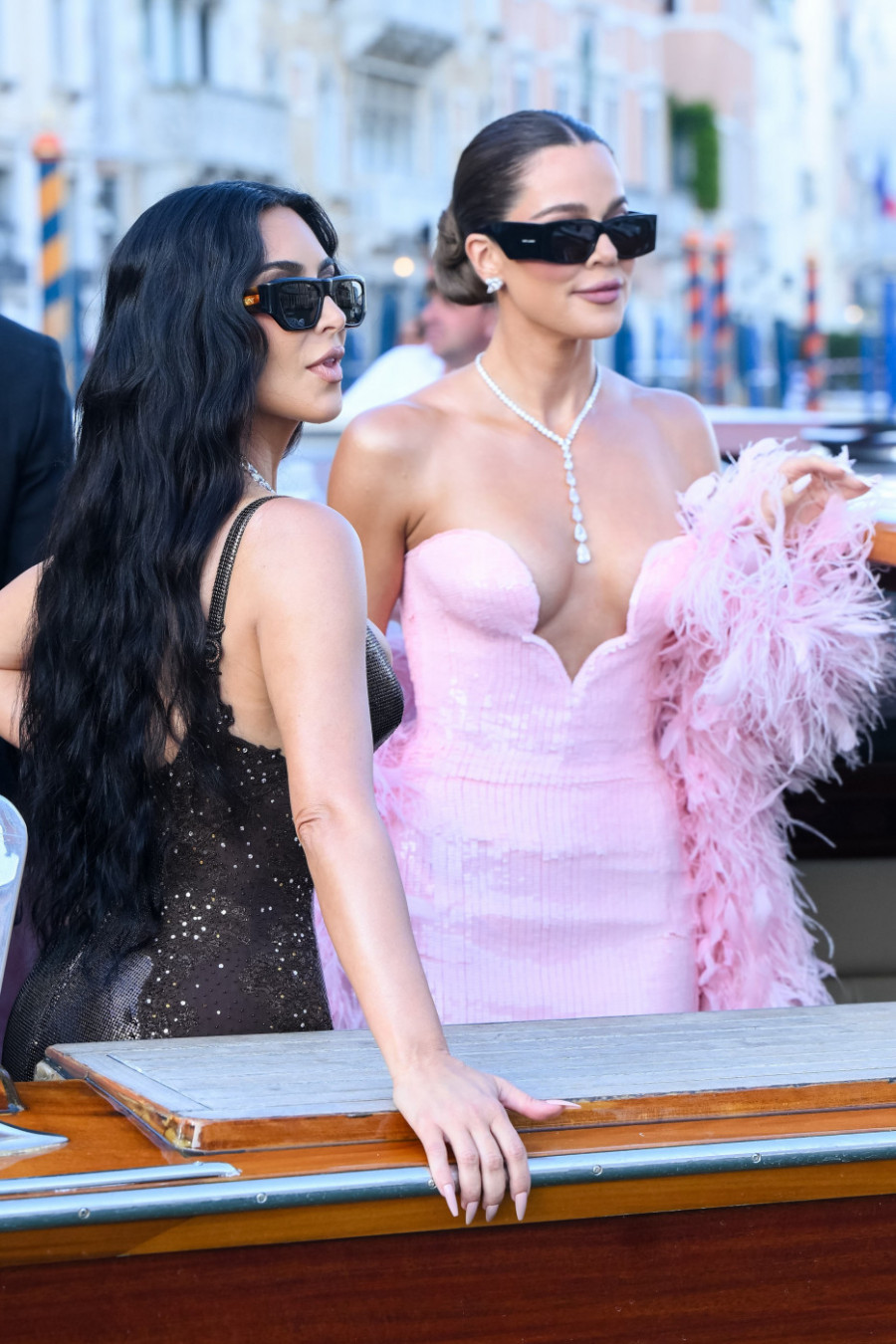 Njena ćerka Kloi Kardašijan pratila ju je u bledo ružičastoj haljini sa perjanim rukavima koji padaju s ramena i dubokim dekolteom. Stajling je začinila crnim naočarima, dijamantskom ogrlicom i punđom.