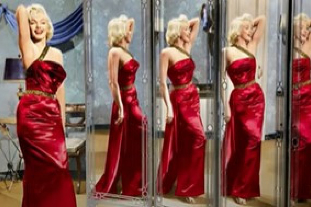 Reditelj Hovard Hoks odlučio se da u sekvenci svog filma pusti pesmu Diamonds Are A Girl’s Best Friend dok je prateća slika Merilin Monro u satenskoj roze uskoj haljini, koju su dodatno obogatile satenske roze rukavice koje idu iznad laktova i dijamanti. Ova haljina koji je, takođe, napravio Viliam Travila, postala je žestoka konkurencija Merilinki, a zanimljivo je da je haljina napravljena u pet do 12 s obzirom da je prvobitni plan bio da se Merilin pojavi u donjem rublju ukrašenom dijamantima.