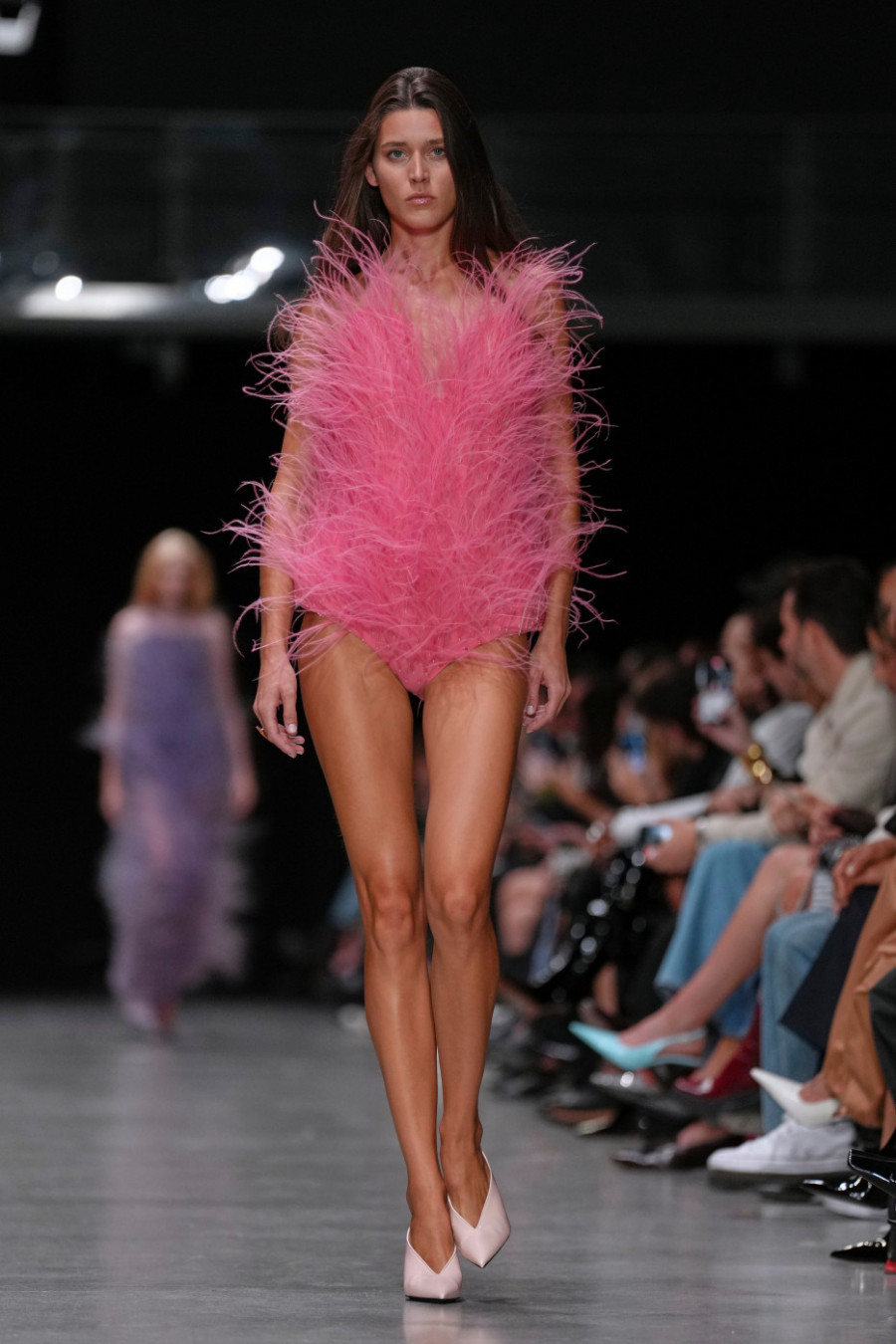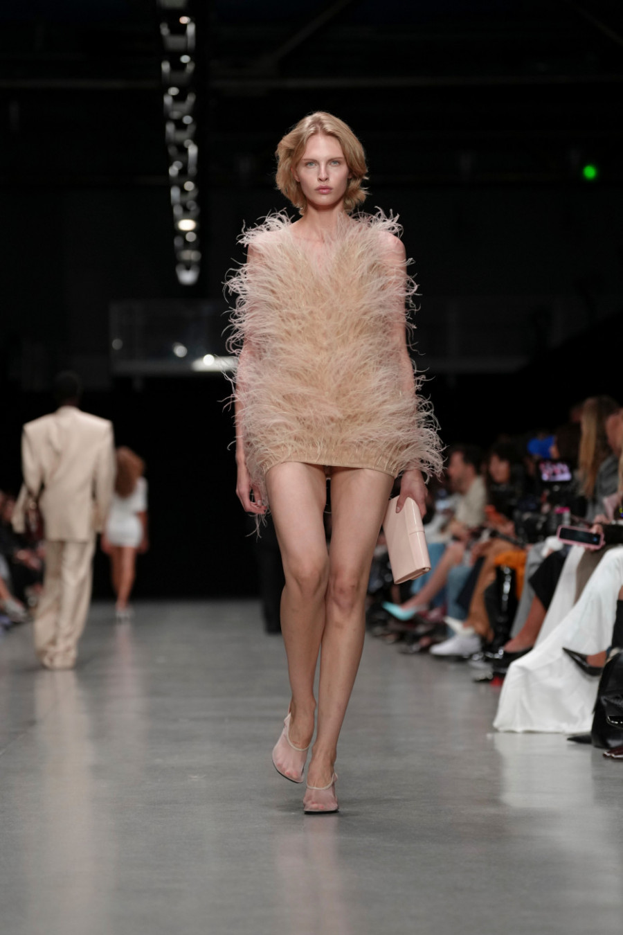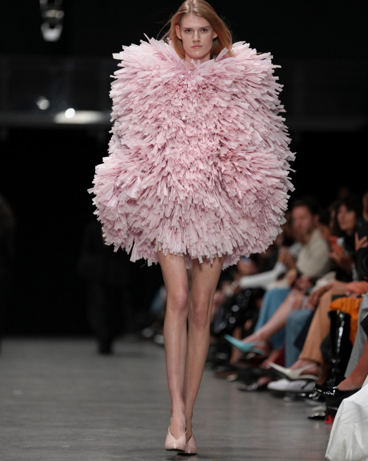 Manekenke su se brzo kretale pistom, prikazujući kratke haljine od naslaga rafije, prirodnog vlakna koje se dobija iz lišća palme. Pastelne toalete od prozračnog, biljnog materijala koji je alternativa perju dominirale su pistom.