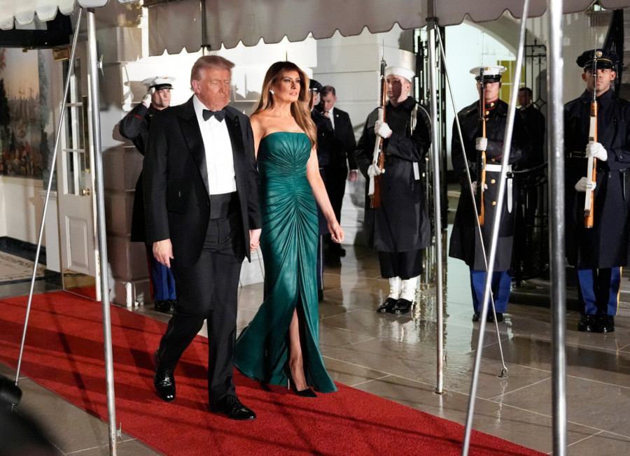 Pojavila se u uskoj, pripijenoj haljini bez bretela, ukrašenoj raskošnim nakitom, a njen odvažan izbor istakao je besprekornu figuru prve dame. Retko koja žena bi se usudila da nosi tako zahtevnu haljinu, ali Melanija je još jednom pokazala da se ne plaši modnog rizika i da tačno zna kako da privuče pažnju.