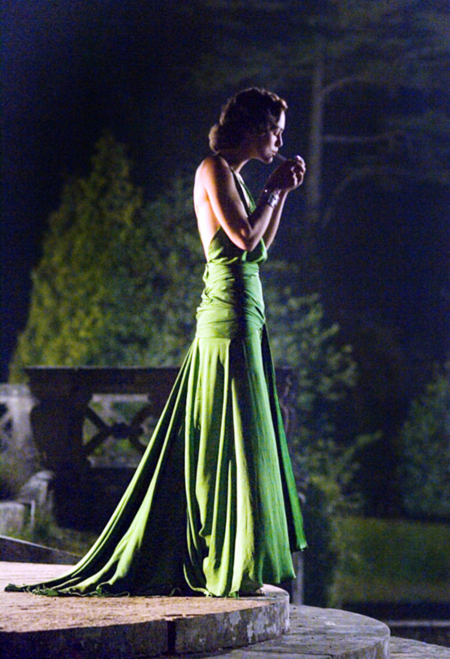 Smragnozelena haljina glumice Kire Najtli u filmu "Pokajanje" (Atonement) postala je simbol strasti, ljubomore i dramatičnog susreta aristokratije i emocija koje se ne mogu kontrolisati. Režiser Džo Rajt tražio je nešto posebno za ključnu scenu filma, haljinu koja će biti istovremeno praktična za kretanje, a dovoljno upečatljiva da nosi ključnu narativnu težinu. Kostimografkinja Džeklin Duran, inspirisana modom 20-ih i 30-ih godina, pažljivo je birala elemente koji savršeno ističu figuru glavne glumice, dodajući moderne detalje poput golih leđa i ramena.